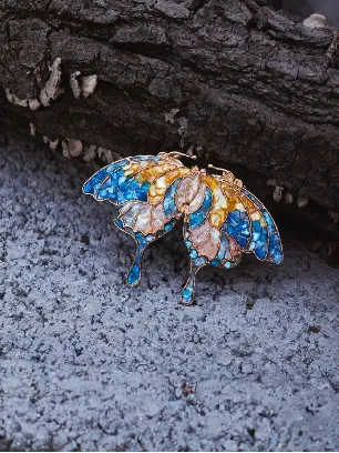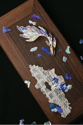 取天然螺钿薄片,经切割、打磨、镶嵌,与金属底托融合。螺钿折射独特光影,胸针设计精巧,既是配饰也是微型非遗艺术品。