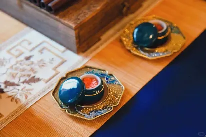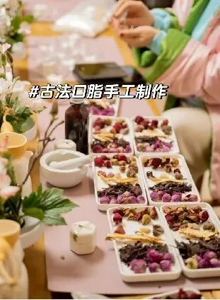 以蜂蜡、植物油脂为基,加红花、紫草等制成。调配讲比例,口脂温润细腻且无化学添加,护唇同时传承古代美妆智慧。