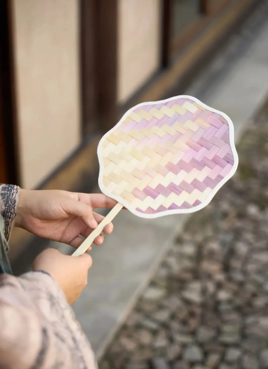 竹编团扇是一种传统手工艺品,以竹篾编织扇面,辅以精美装饰,既可纳凉实用,又展现古典艺术与文化韵味。