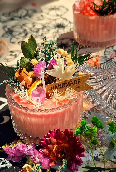 蜡烛跟草本植物的融在一起,最好是驱蚊的草本放里面,氛围感拉满还驱蚊。