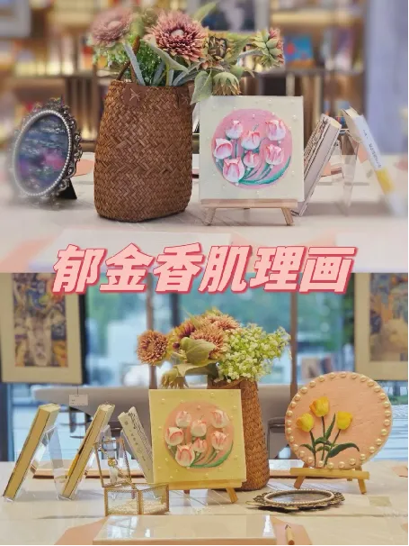 把素雅的永生花洒落在油画框上,体验丙烯、构图、粘花,还原生活本该有的诗情画意。