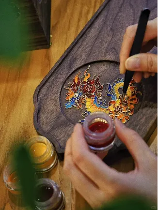 依古法掐丝、点蓝、烧制,铜丝勾轮廓,珐琅填色彩。掐丝精准、点蓝细腻,经窑火淬炼后,色泽明艳、质感厚重,重现千年工艺光彩。