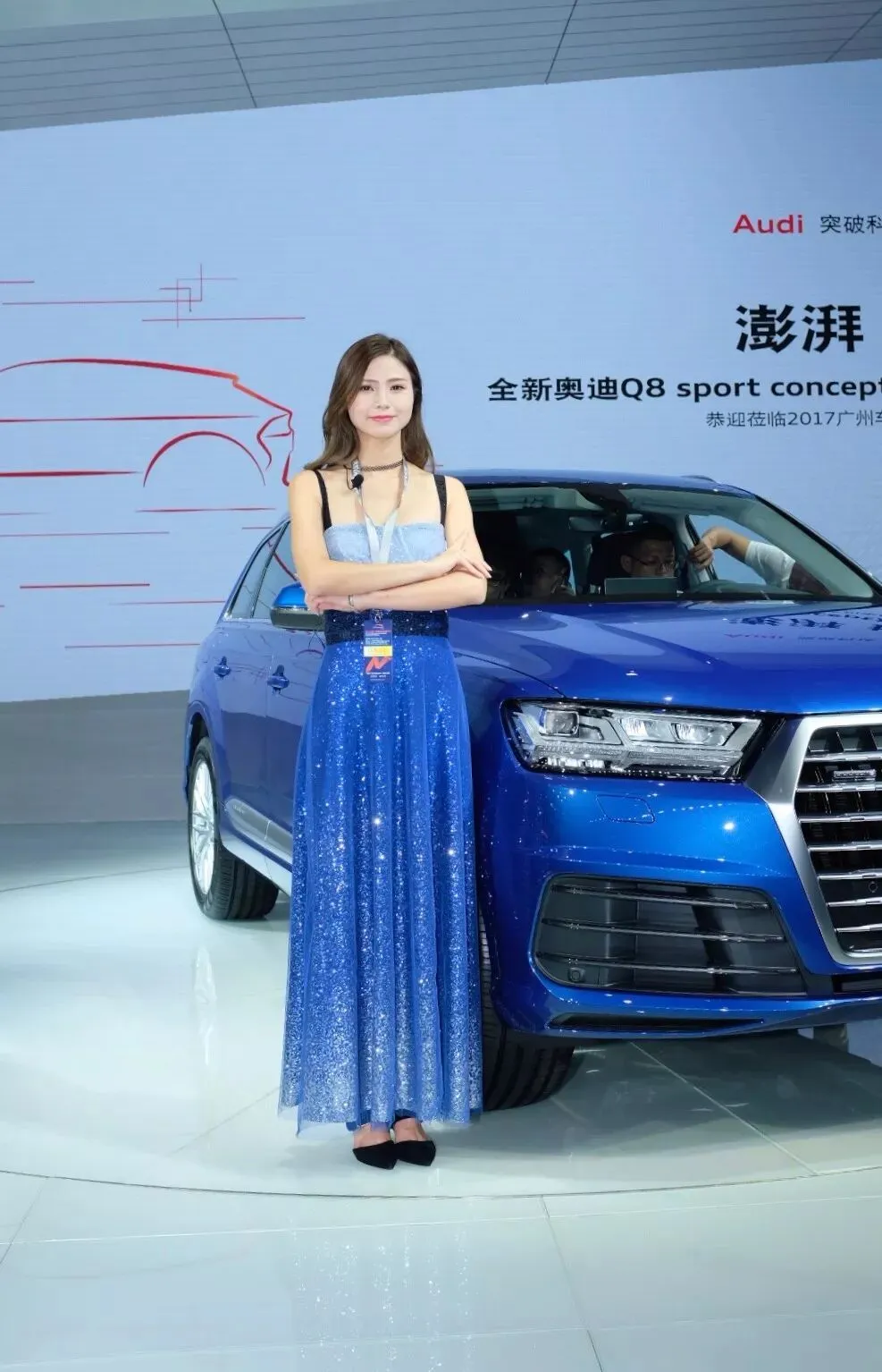 唯一可以区别广州车展真实车模和驾仕派女神的,就是胸前记者证挂牌了。