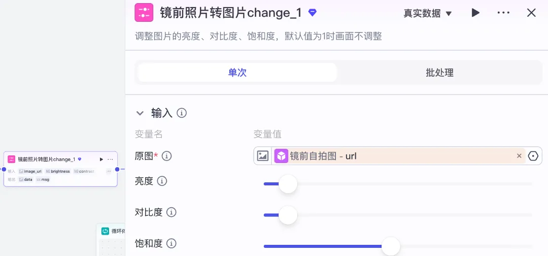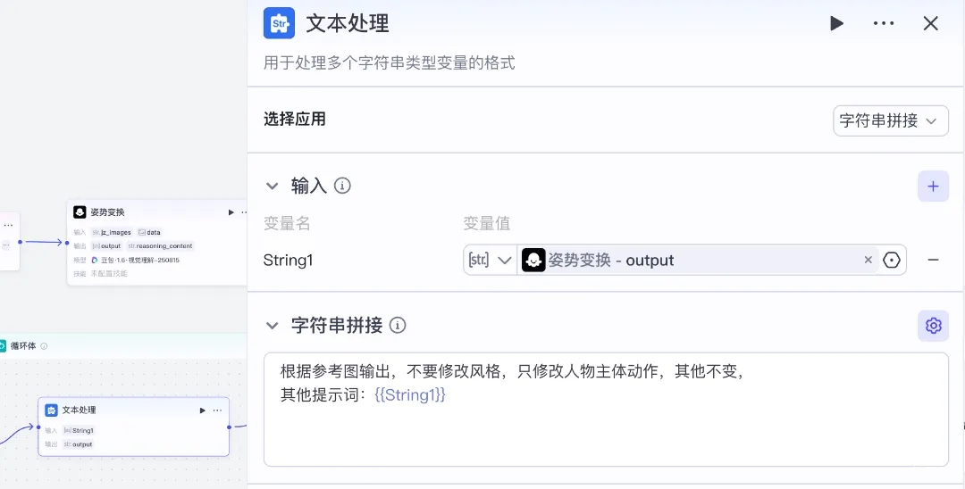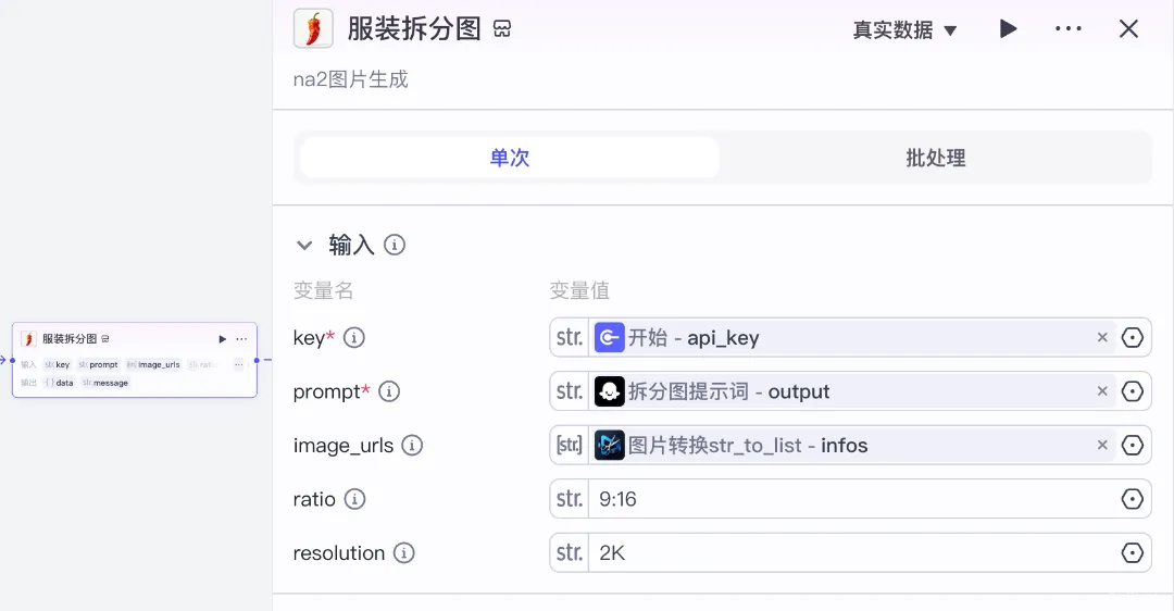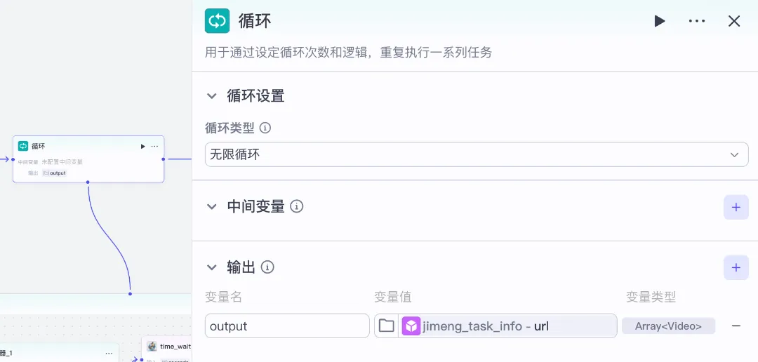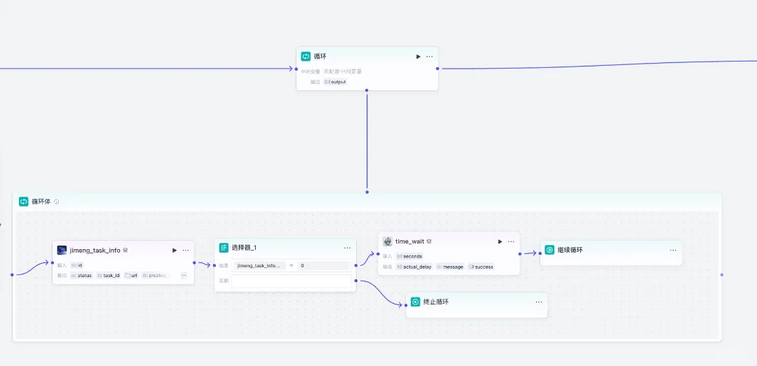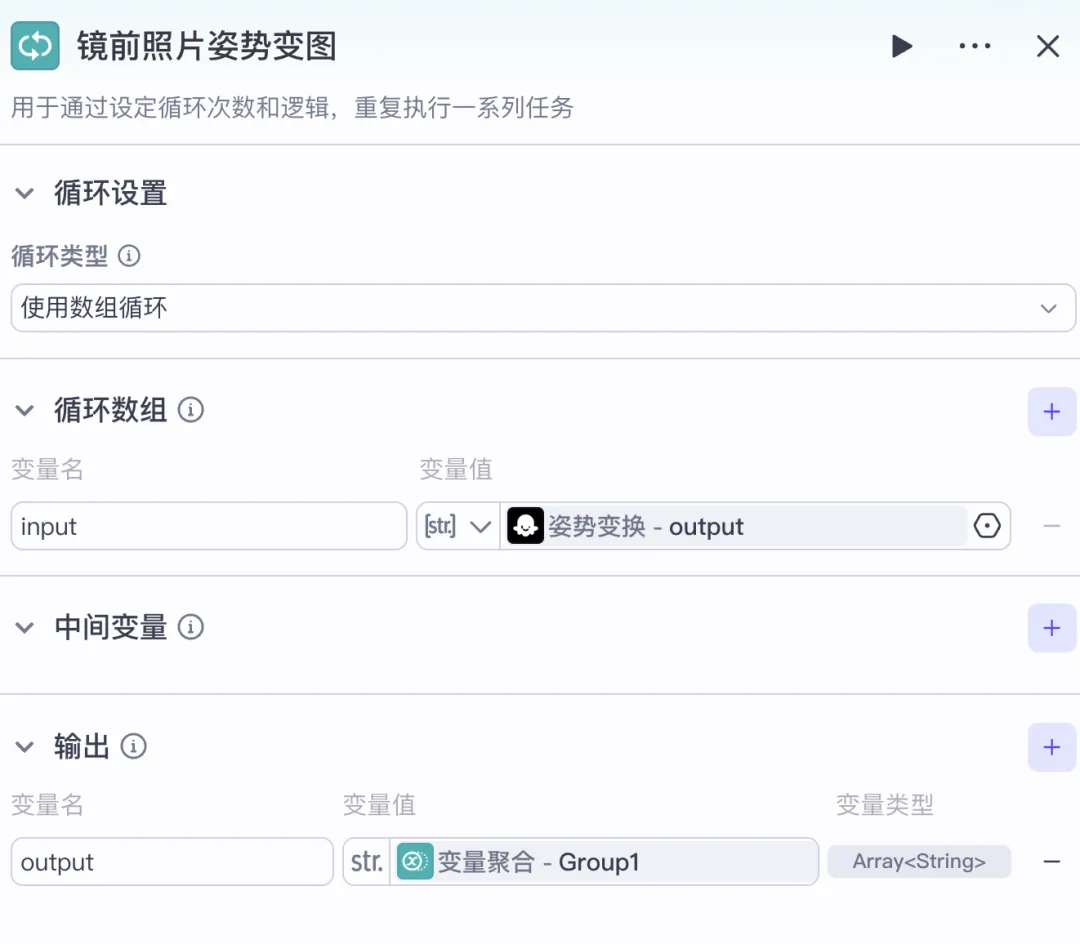 因为涉及到多张图片的生成,这里要涉及到循环的组件,多次循环生成。下面是循环的整体配置总览。