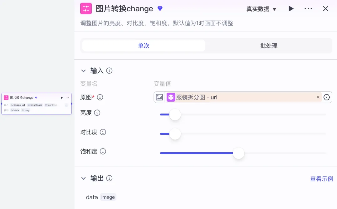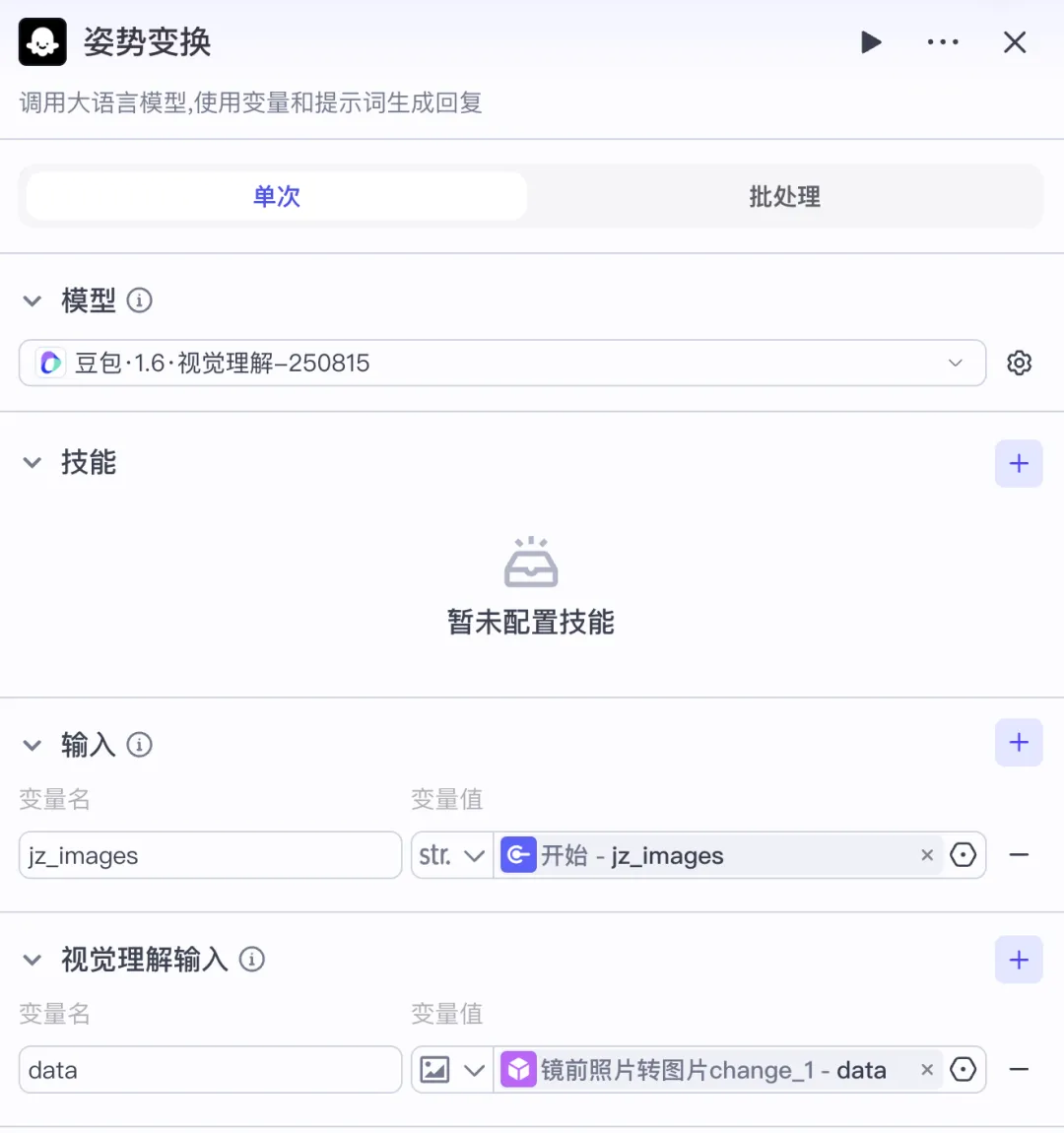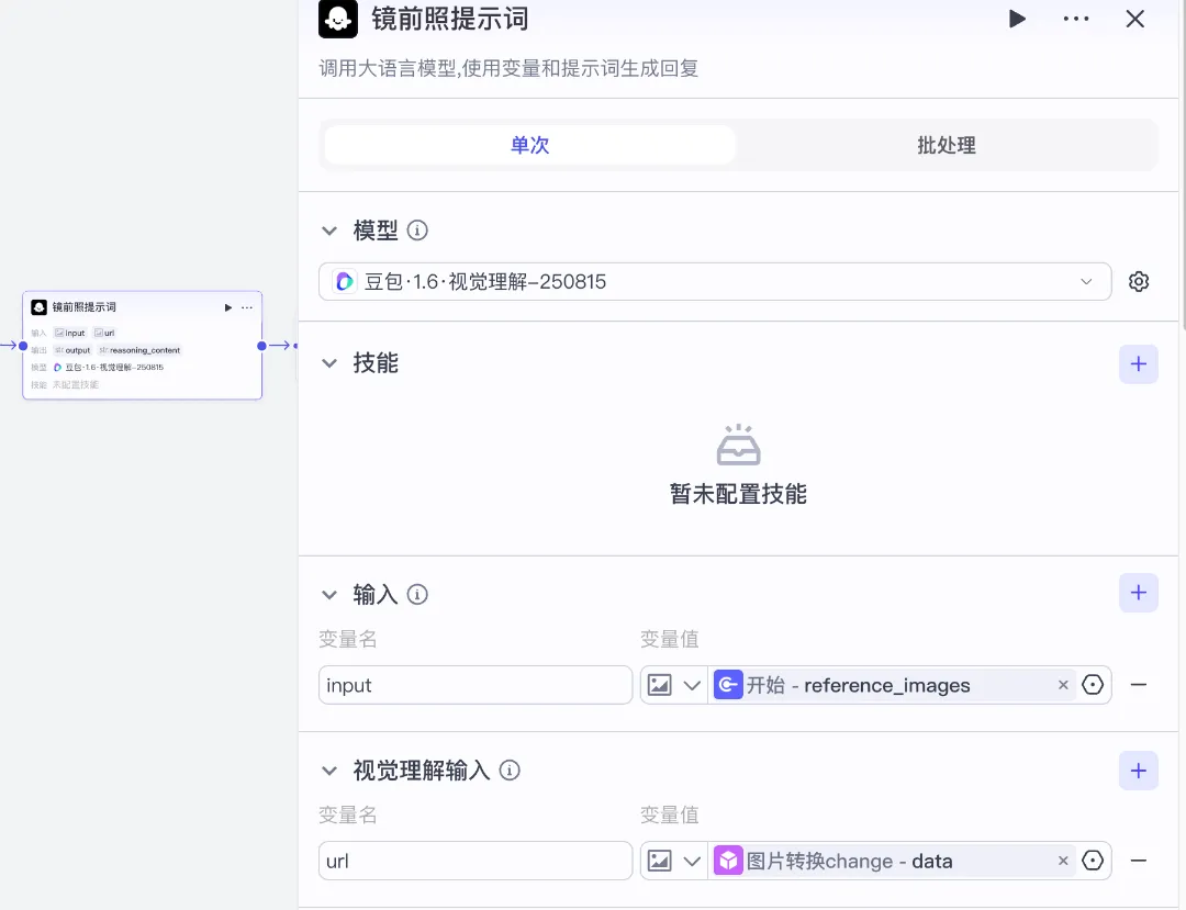 在生成提示词之前,我们需要对第4步生成的镜前照转换一下格式,同样用到的也是扣子官方的”调整“插件。