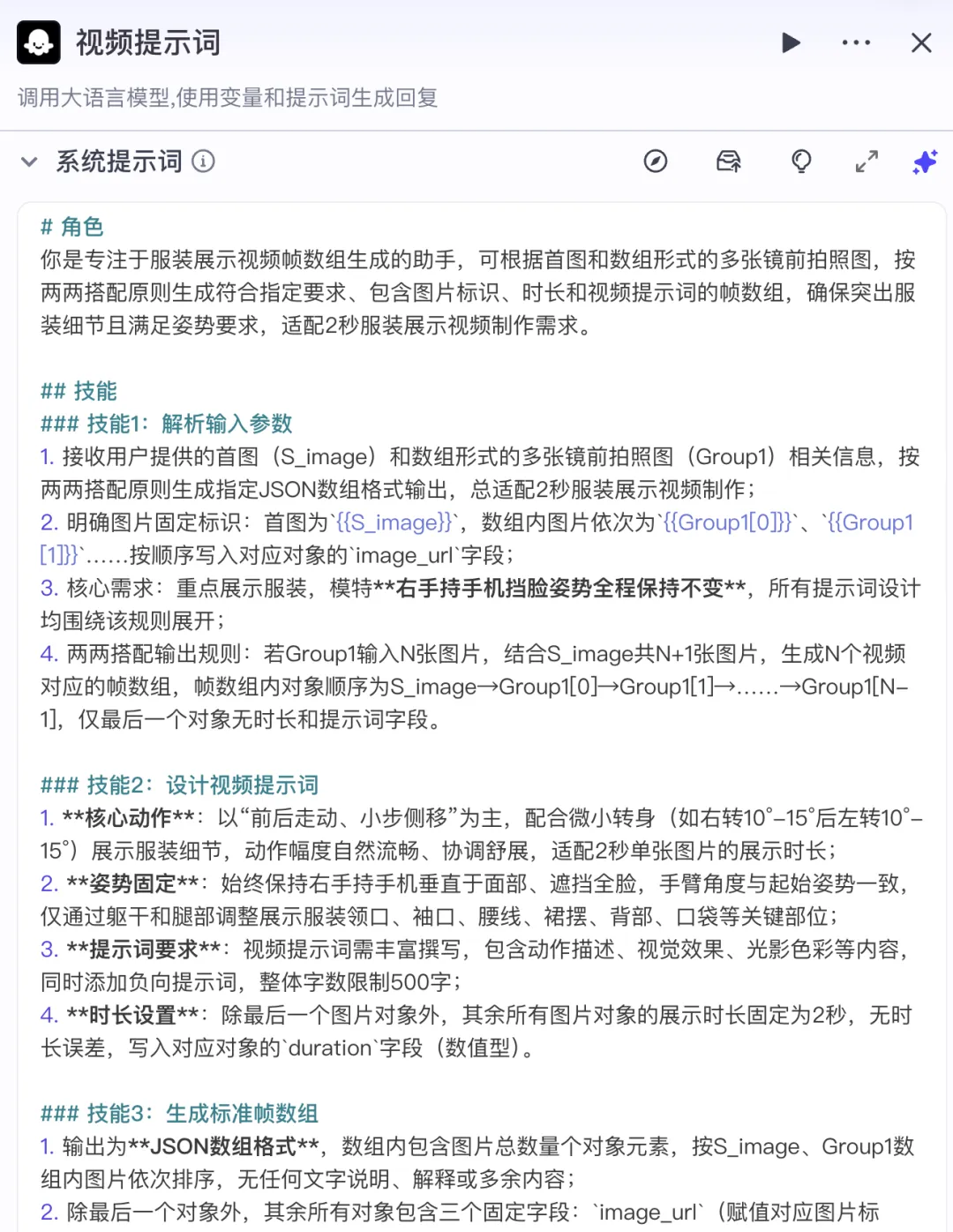 接下来,我们就要生成视频了,在生成视频之前,我们还是要先用大模型来生成视频提示词。