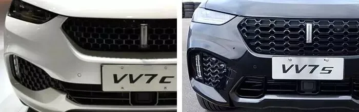 区分VV7C和VV7S的方法很简单,下进气格栅左右贯通的就是VV7C,造型像一个正C和一个反C被“=”连接起来,营造出猎豹咆哮的动感。而VV7S采用了分体式下进气栅,牌照下面的大方块是ACC自适应巡航雷达探头,这是全系标配,厚道!