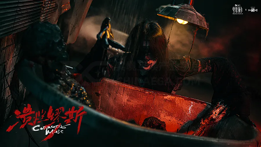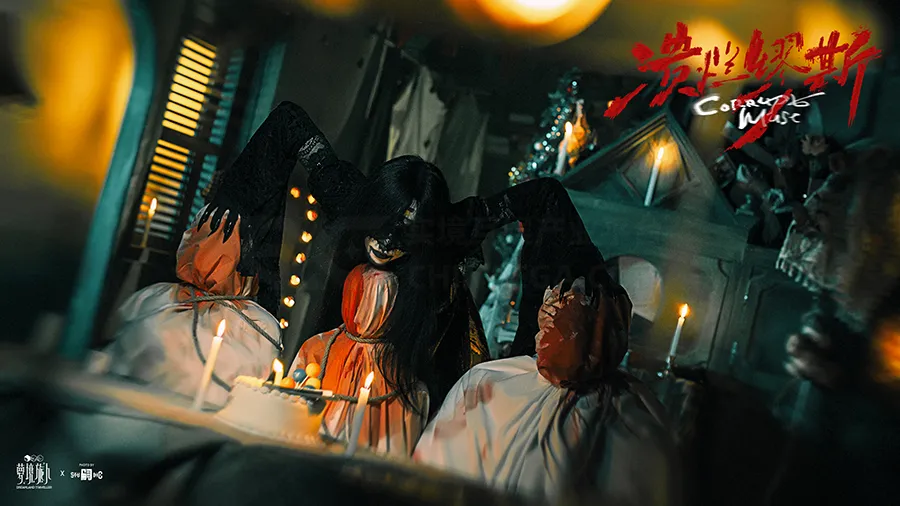 流程节奏方面,主题以密集的高能环节铺满整个流程,一步一精彩小戏、一场景一震撼大戏,将“过场”时间压缩至极致,巧妙规避了声光电主题带场出戏的弊端。而一般声光电主题的最后压轴戏水准,不过是《溃烂缪斯》每一段高能的平均水平