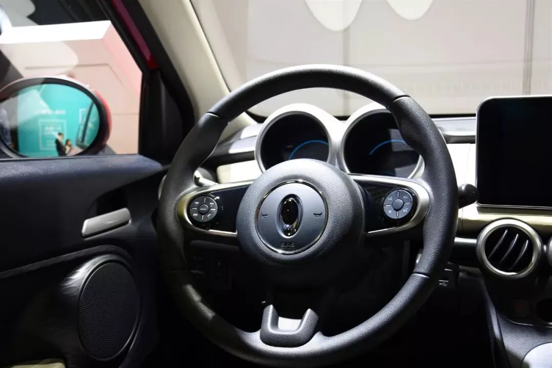 内饰方面,新车多用圆形元素,大走可爱风,三辐式方向盘呈U形断开式设计,搭配双圆仪表造型以及支持手机互联的9英寸悬浮式大尺寸中控液晶屏,里面搭载了科大讯飞智能云语音控制系统,一句“你好,欧拉”轻松唤醒,还支持手机APP远程车辆控制。更是配备了蓝牙电话、倒车影像、电子驻车、ESP车身稳定系统、智能前视系统等配置,手机还可以实现无钥匙进入以及远程预约充电功能。