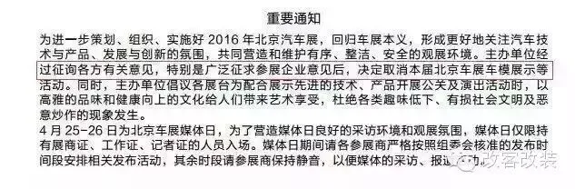 从2016北京车展主办方获得消息,4月25日开幕的2016(第十四届)北京国际汽车展览会(Auto China 2016)将取消车模展示