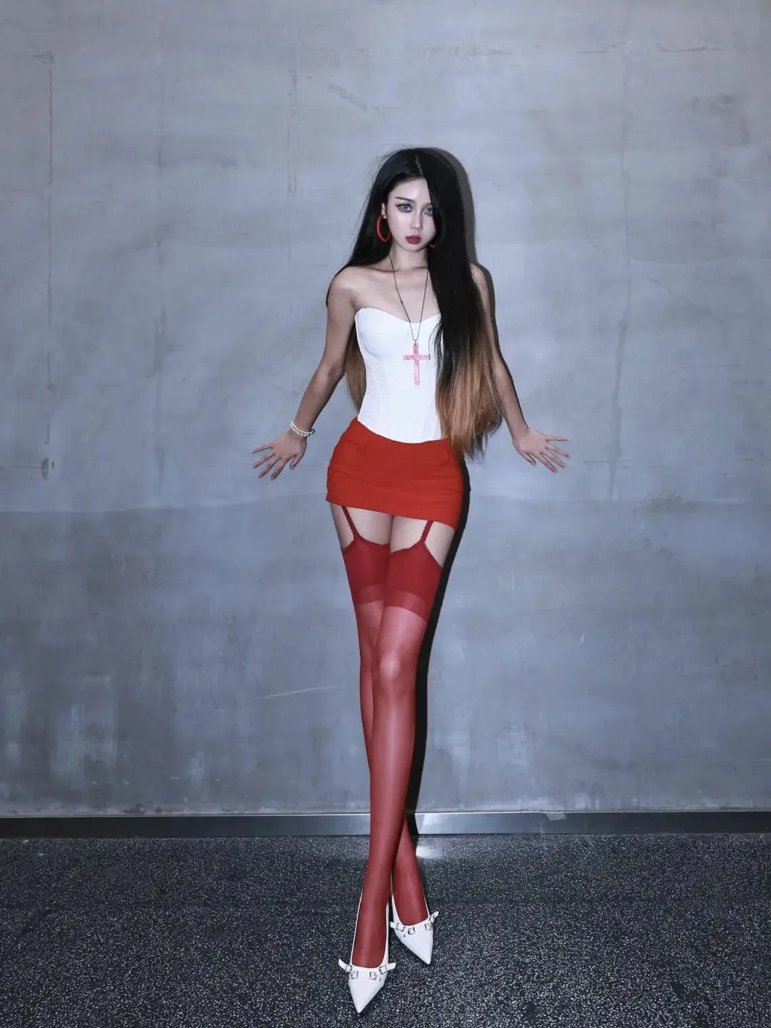 前阵子和高中室友聚餐,她穿了条露背裙,我一眼认出是当年她被骂 “不像好学生” 的那条。她扒拉着我红衬衫的领口笑:“你记不记得高二我暗恋那男生,为了他把裙子塞衣柜,现在?我穿露背裙是因为我后背好看,不是为了谁的眼光。”你看这张图里的姐姐,手搭在楼梯扶手上都带风,哪有半分 “等谁来接” 的样子?我现在出门必涂正红色口红,穿能露锁骨的衣服 —— 上周跟朋友去 livehouse,有男生过来要联系方式,我抬了抬高跟鞋尖:“我今天是来听歌的,没空聊‘你觉得我穿得怎么样’。”前几天和闺蜜逛街,她盯着我新买的高跟鞋说 “你变了”。我笑着踩了踩地砖:“是变了,以前总怕鞋跟太高摔跟头,现在才发现,站得稳不稳,从来不是鞋跟的问题 —— 是你到底把重心放在自己身上,还是别人眼里。”