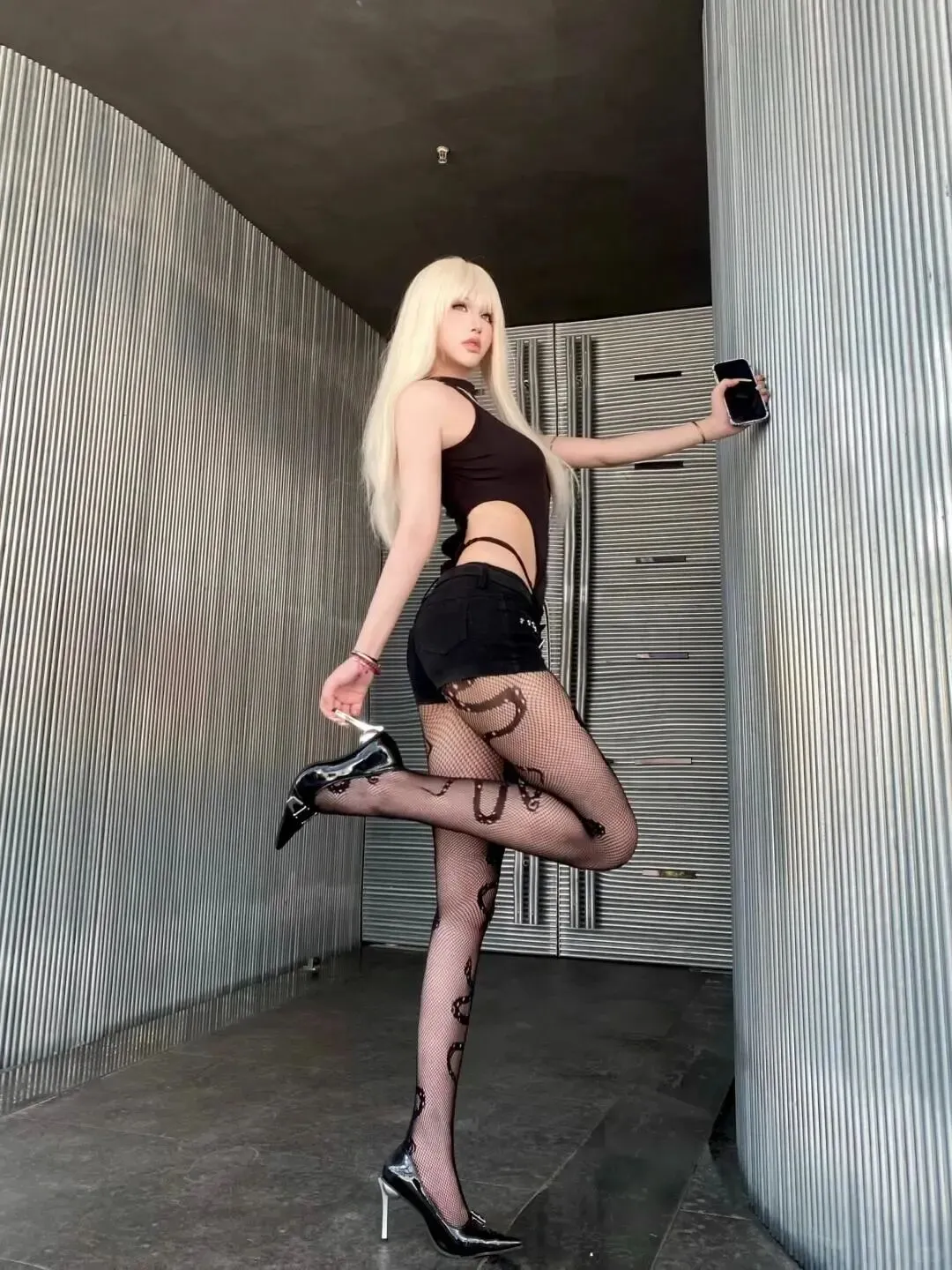 直到去年加班到凌晨,在公司楼下便利店看见个穿酒红吊带的姐姐,踩着细高跟拎着关东煮,跟老板笑着说 “加俩鱼丸,今天稿子过了”—— 那瞬间我突然醒了:“得体” 哪是别人定的规矩?是我把 “让所有人舒服”,当成了自己的任务。后来我开始慢慢 “抢地盘”:先从涂正红色口红开始,再到穿露肩衫开会,直到今天套上这双细高跟的鞋,坐在天桥边看车来车往。风把头发吹乱的时候,我摸了摸脖子上的项链,突然觉得 “好看” 哪儿是为了吸引谁啊?是我终于敢把 “我喜欢” 写在身上,像给心脏穿了件铠甲。前几天我母亲视频看见我这身,顿了顿说 “好像比以前精神”—— 你看,那些我们怕的 “议论”,其实大多是自己脑补的戏。就像今天这双丝袜,有人觉得 “太张扬”了,可我踩着它走过天桥时,连脚步都比平时稳。