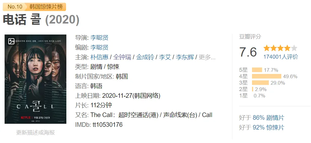 双女主风格也极具吸引力,与朴信惠共同出演《电话》,演技不落下风,可谓是将这种风格发挥到极致,尤其是她那轻蔑的斜嘴笑,印象深刻。