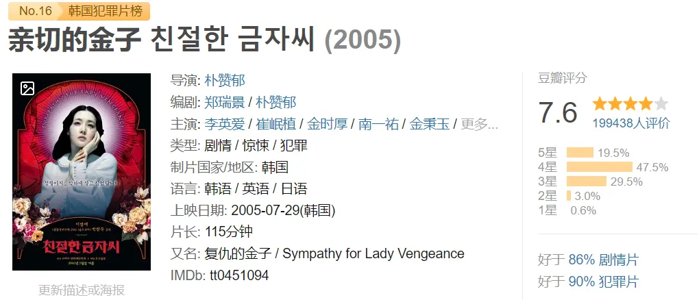 朴赞郁复仇三部曲之一,唯一一部以女性为主角的《亲切的金子》,另外两部是《我要复仇》、《老男孩》。