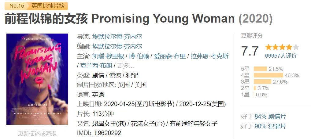 此外还有《前程似锦的女孩》,也是向男权反击的电影,这里就不展开了,可以去看原片。