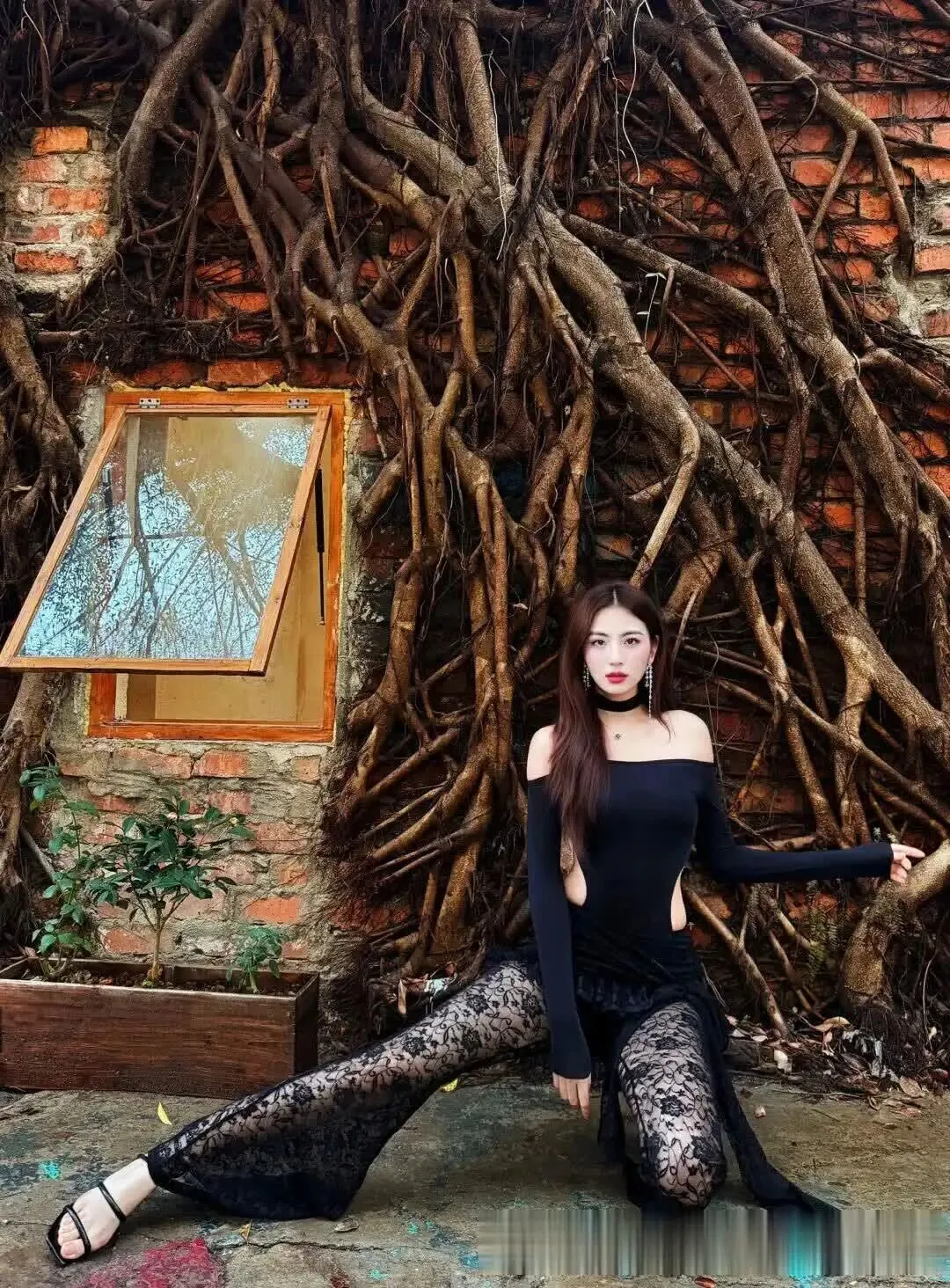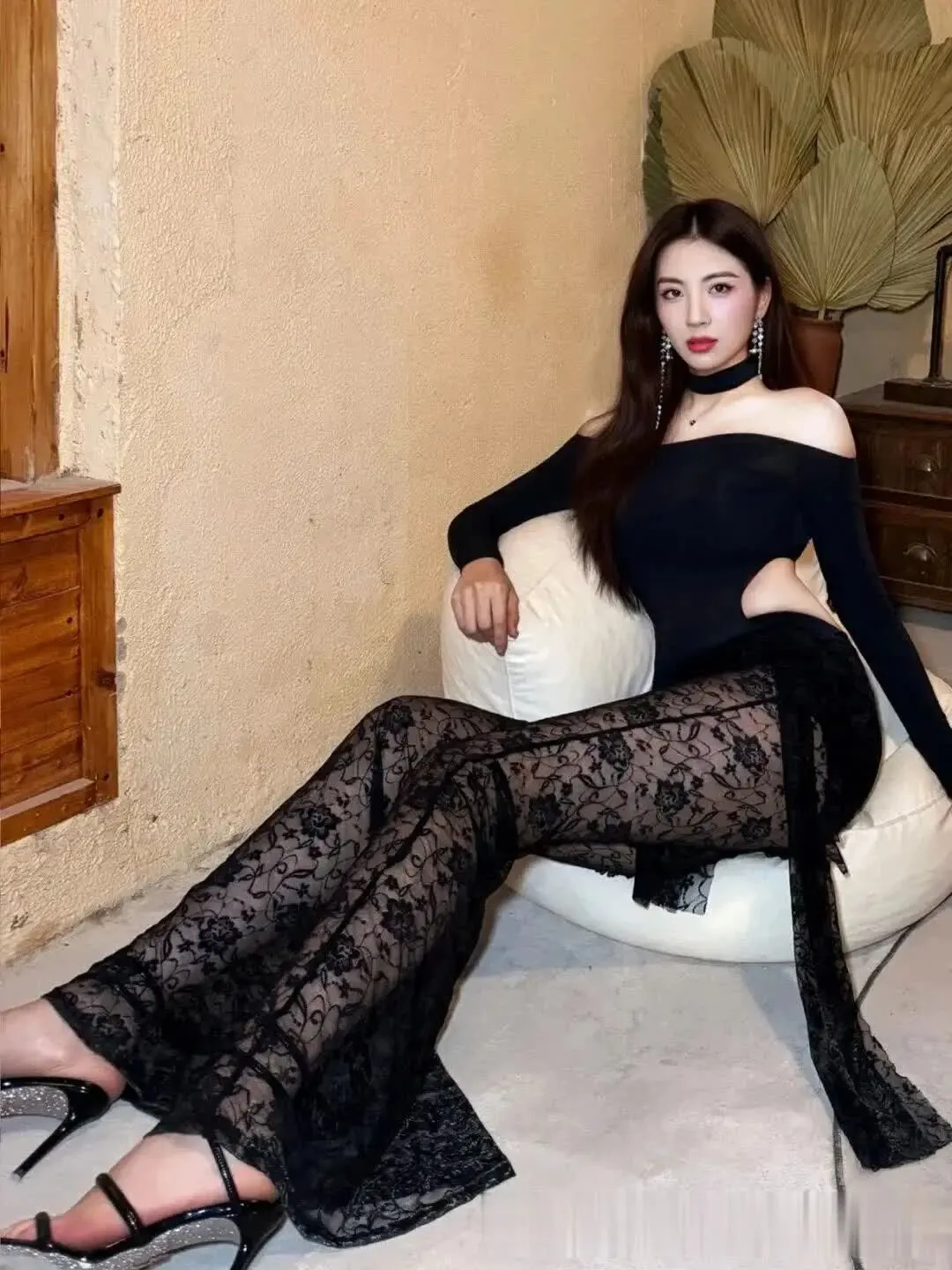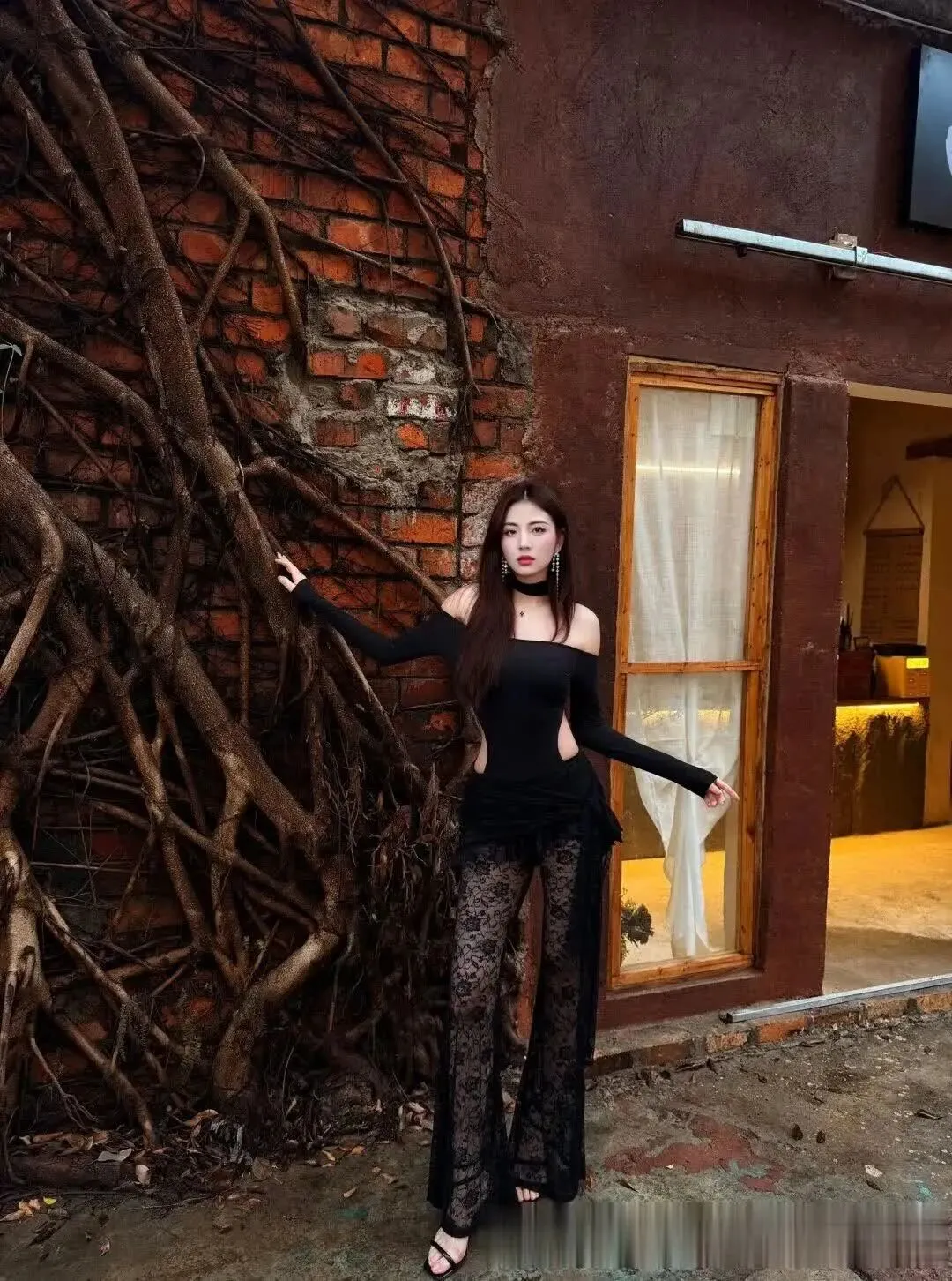 当前位置:首页>美女资讯>美女模特、行走的暗黑美学,卷发大波浪+蕾丝裤透光杀 +露肩裹身,尖头鞋踩碎纯欲天花板~