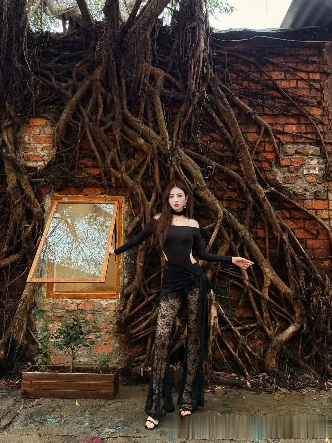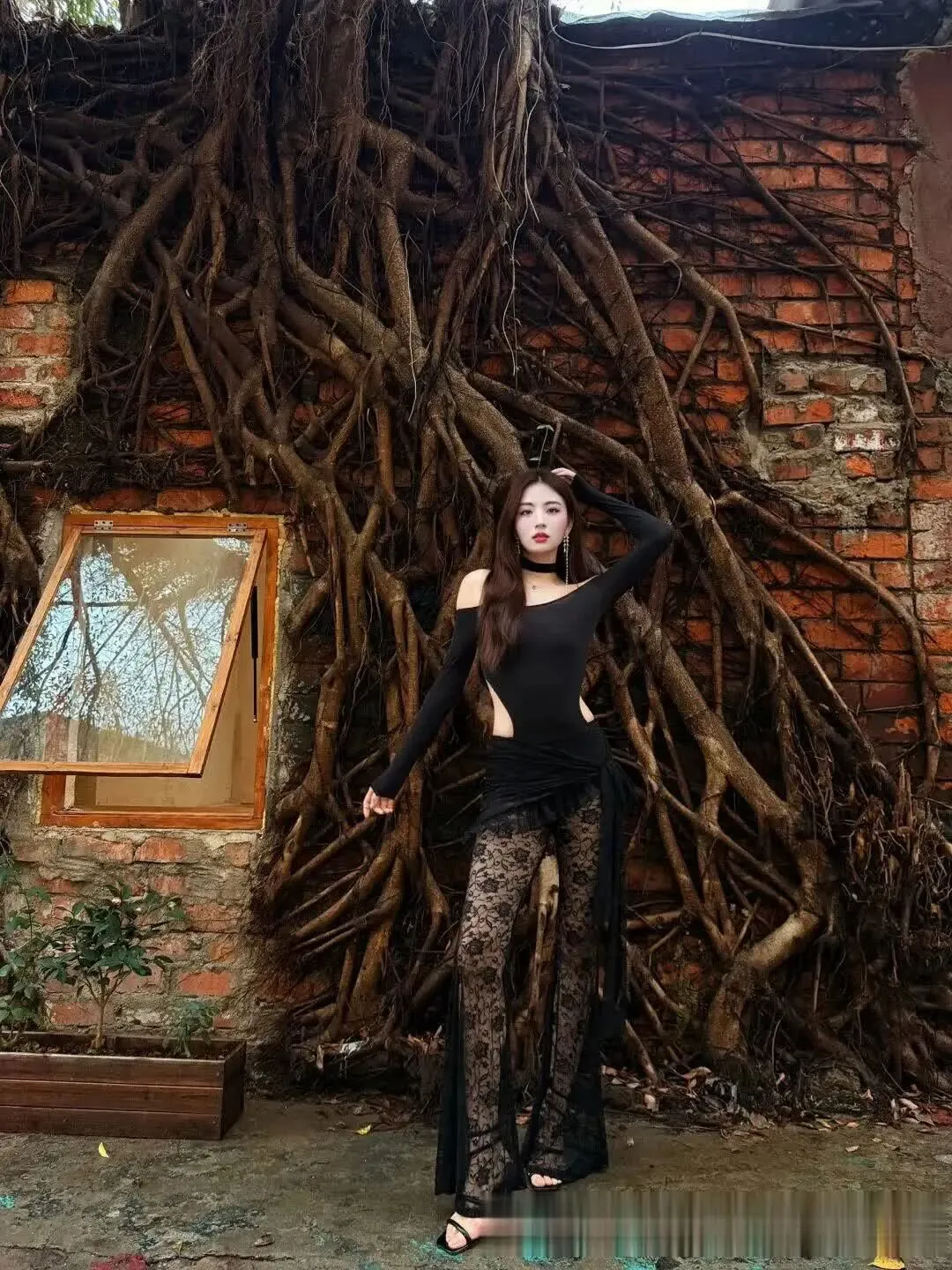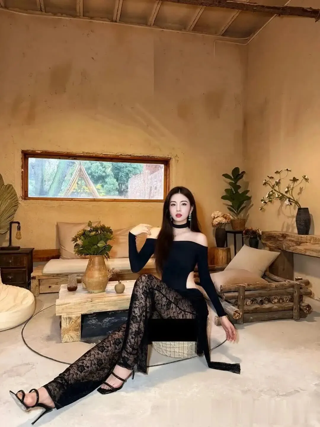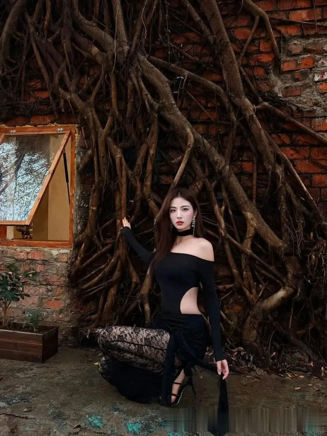 当前位置:首页>美女资讯>美女模特、行走的暗黑美学,卷发大波浪+蕾丝裤透光杀 +露肩裹身,尖头鞋踩碎纯欲天花板~