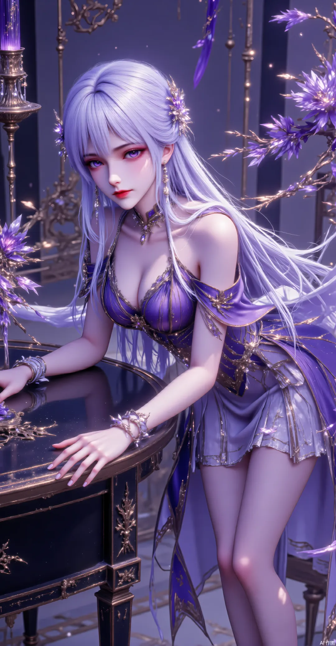 眼眸是圣采儿最动人、也最具辨识度的地方,是她身份的象征,是她力量的源泉,更是她一生宿命与深情的最好见证。她有着一双极为漂亮的紫色眼眸,瞳仁是澄澈的淡紫色,宛如浸在灵泉中的紫水晶,清澈而有光泽,却又深不见底,藏着太多的情绪与故事——未觉醒力量时,眼底是纯粹的清冷与懵懂,带着一丝不易察觉的胆怯;觉醒死灵之力后,眼底多了几分深邃与凌厉,藏着对力量的敬畏与对诅咒的无奈;与龙皓晨相遇后,眼底渐渐有了光芒,清冷中多了几分温柔与深情,看向龙皓晨时,眼底的光芒足以驱散所有黑暗;诅咒发作或催动全力时,她的眼眸会变成浓郁的深紫色,眼尾会泛起淡淡的血色纹路,眉心会浮现出死灵圣法神的印记,那份模样,清冷而妖异,凌厉而致命,让人不寒而栗。
