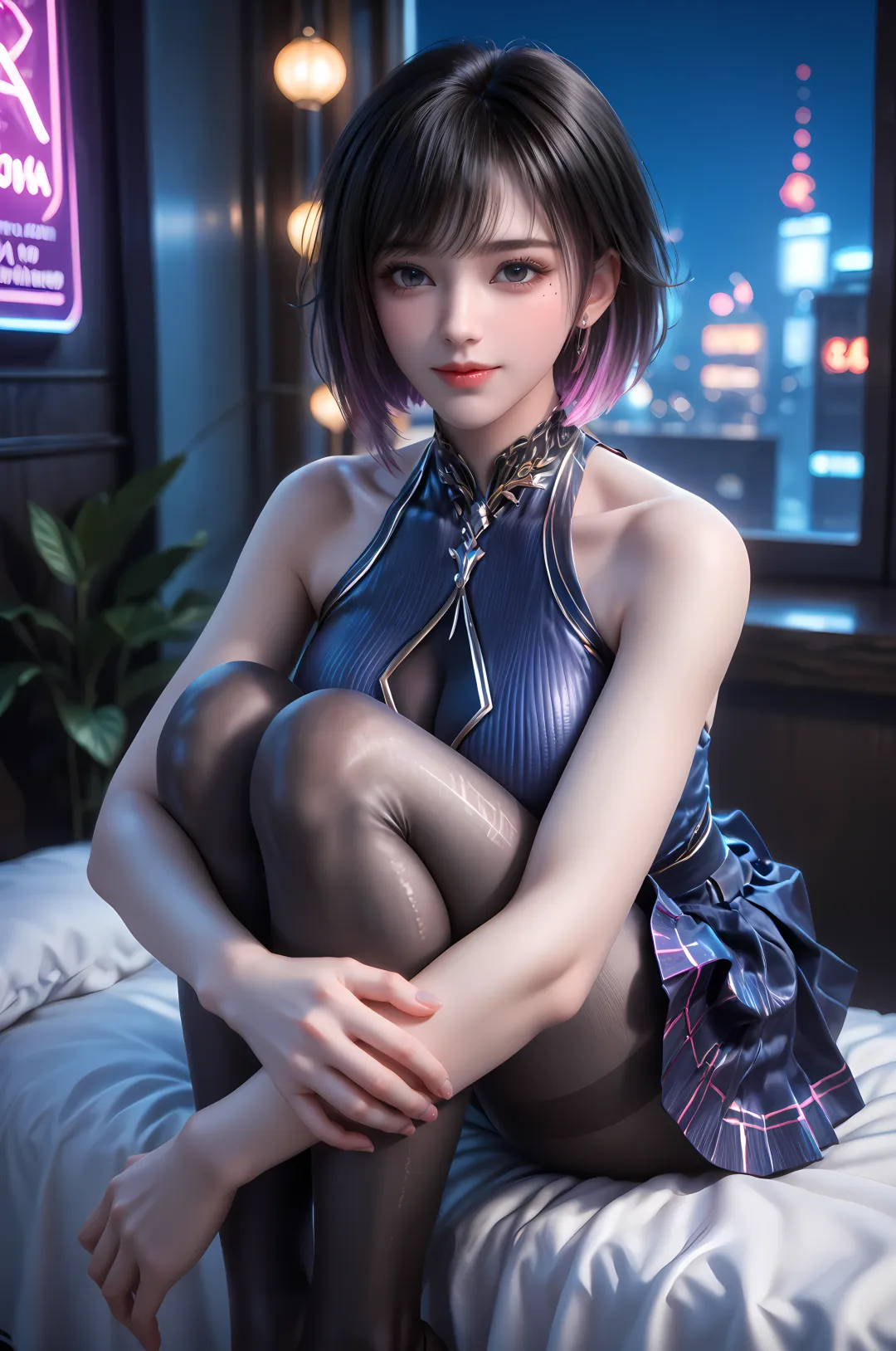 她的鼻梁秀挺笔直,线条流畅,恰到好处地撑起了面部的立体感,鼻尖小巧圆润,带着几分娇憨。唇形饱满,唇色是天然的鲜红色,性感而明艳,不施唇脂却依旧莹润动人,不笑时唇线微微紧绷,带着几分傲气与疏离;生气时,双唇紧抿,脸颊泛红,不是害羞,而是气性太大难以平复;偶尔浅笑时,嘴角上扬,露出一抹浅浅的梨涡,瞬间褪去所有的火爆与锋芒,还原出少女的娇俏与柔软,那份笑容,干净而纯粹,却极少出现,唯有在卸下所有防备、发自内心欢喜时,才会悄然绽放,转瞬即逝。