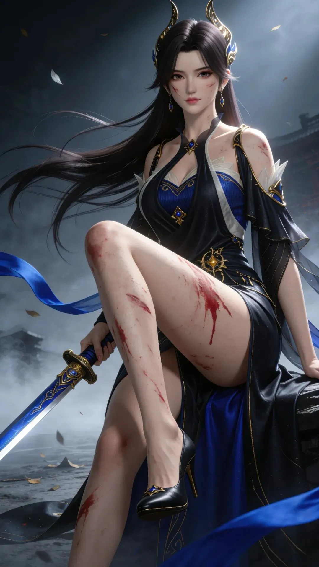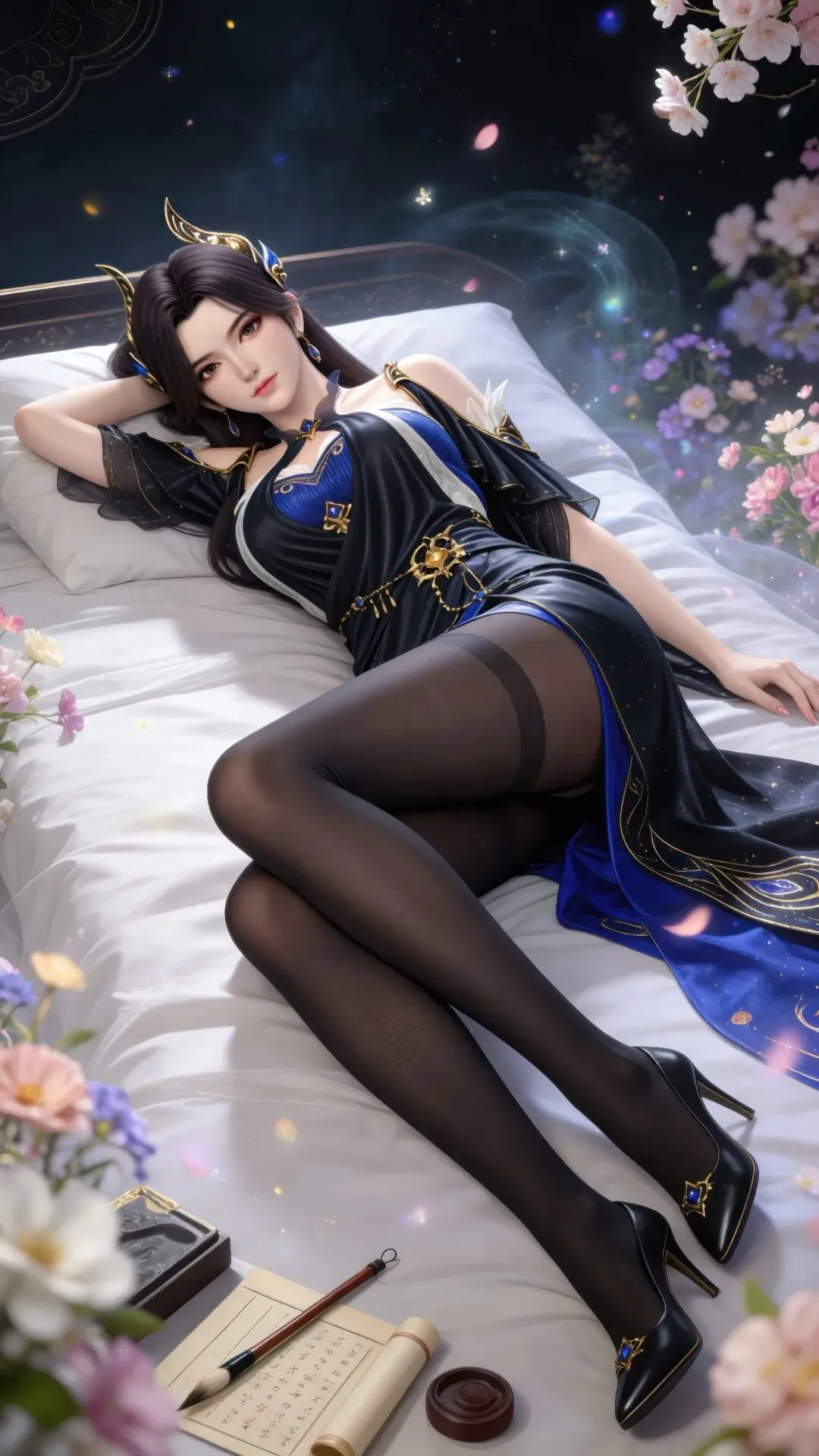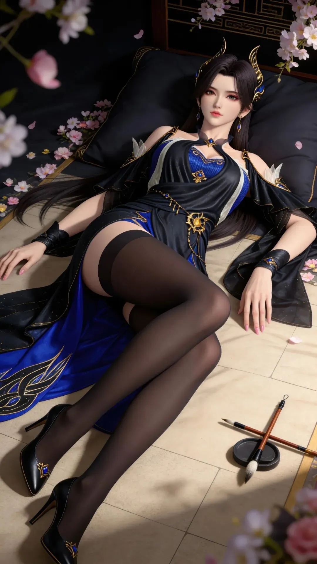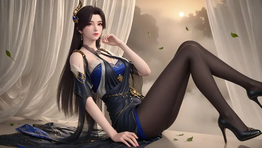 年少时期,尚未踏入丹塔、养尊处优的曹家贵女时期,曹颖的衣着便尽显华贵与张扬,贴合她的身份与桀骜的性格。彼时的她,是曹家备受宠爱的嫡系大小姐,锦衣玉食、养尊处优,出身丹塔五大家族,自幼便享受着顶级的资源与荣耀,衣着皆是由斗气织就的云锦、丝绸编织而成,质地柔软细腻,光泽感十足,多以金黄色、黑蓝色为主色调,金黄色彰显她的华贵与傲气,黑蓝色彰显她的沉稳与锋芒,完美贴合她“曹家妖女”的初始形象。常穿的是一袭黑蓝色的广袖长裙,裙摆曳地,轻盈飘逸却不失利落,衣身上用金线绣着繁复的曹家纹路与简单的丹纹,曹家纹路古朴庄重,丹纹简约精致,低调中透着奢华,不张扬却尽显贵气,既彰显了她曹家嫡系的身份,又暗示了她自幼修习丹术的特质。