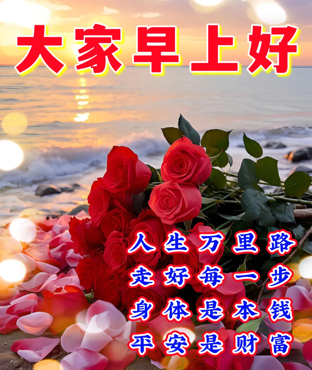 今日收到祝福的人,接下来的每一天都会幸福满满;今日送出祝福的人,未来的日子会加倍幸福。快把这份祝福传递下去,和家人朋友们一起共享幸福。早安!🌹❤️☕️🎉🙏