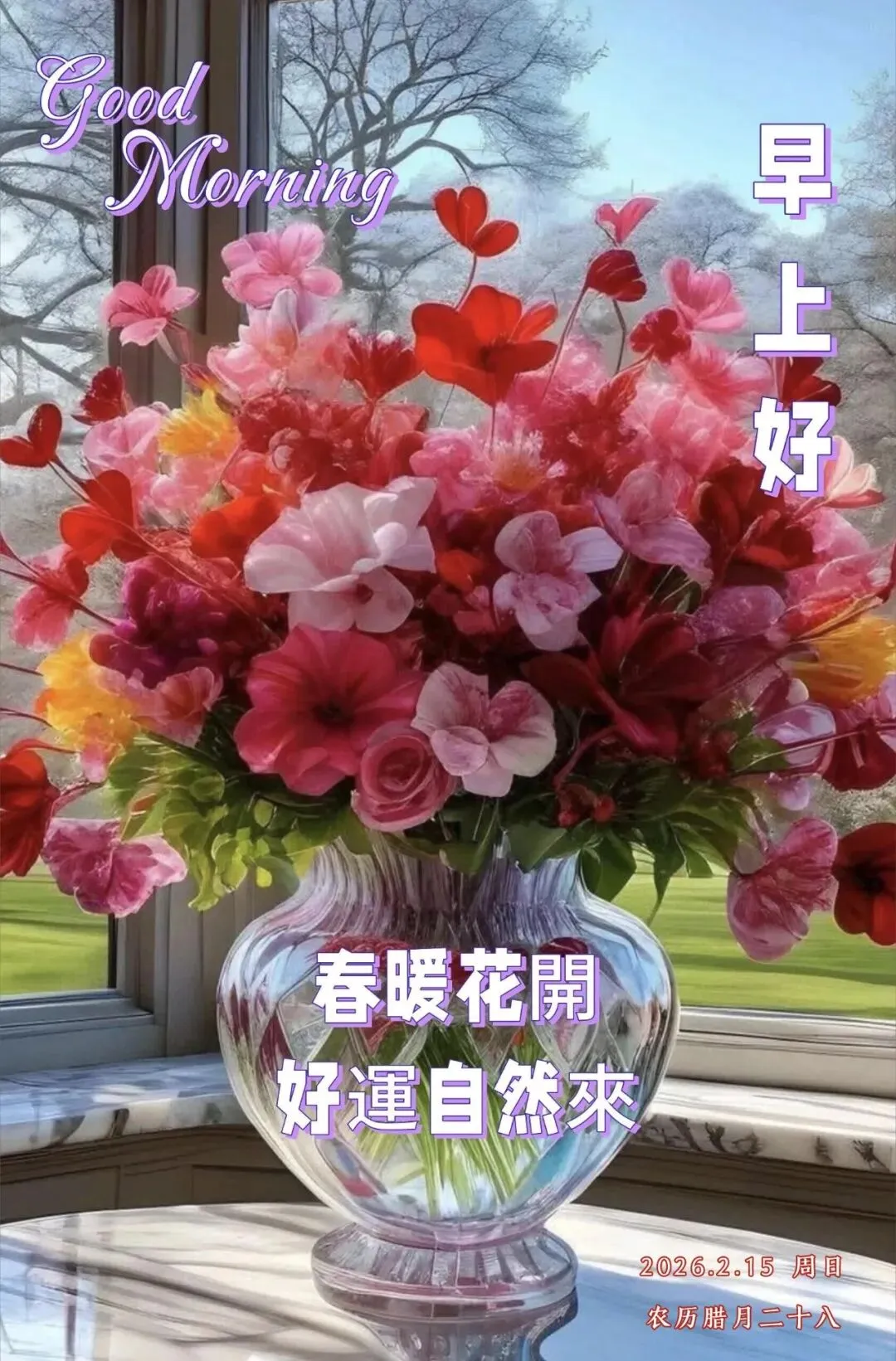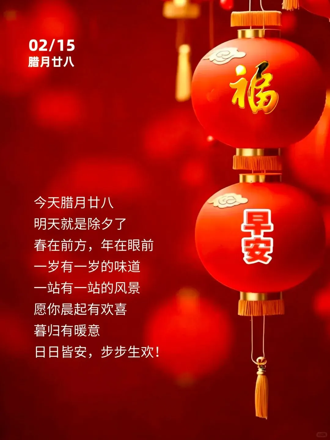 当前位置:首页>美女资讯>2026年2月15日早安图片带日期,腊月二十八祝福图片