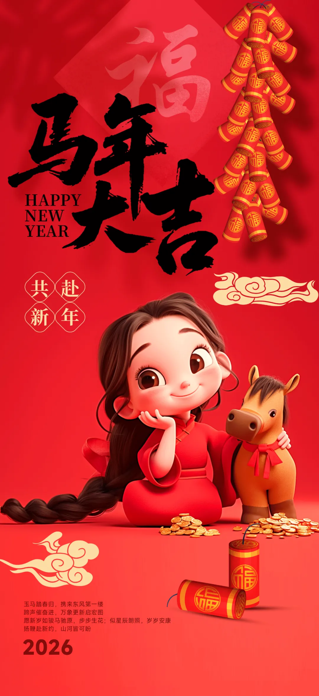 9、春节到,拜年早:一拜全家好;二拜烦恼消;三拜忧愁抛;四拜不变老;五拜儿女孝;六拜幸福绕;七拜运道佳;八拜收入高;九拜平安罩;十拜乐逍遥。马年吉祥,人人笑!