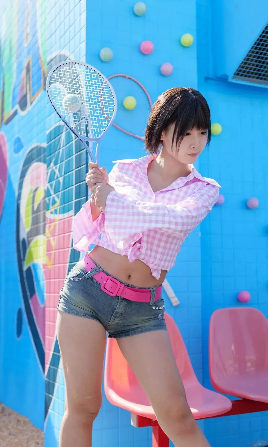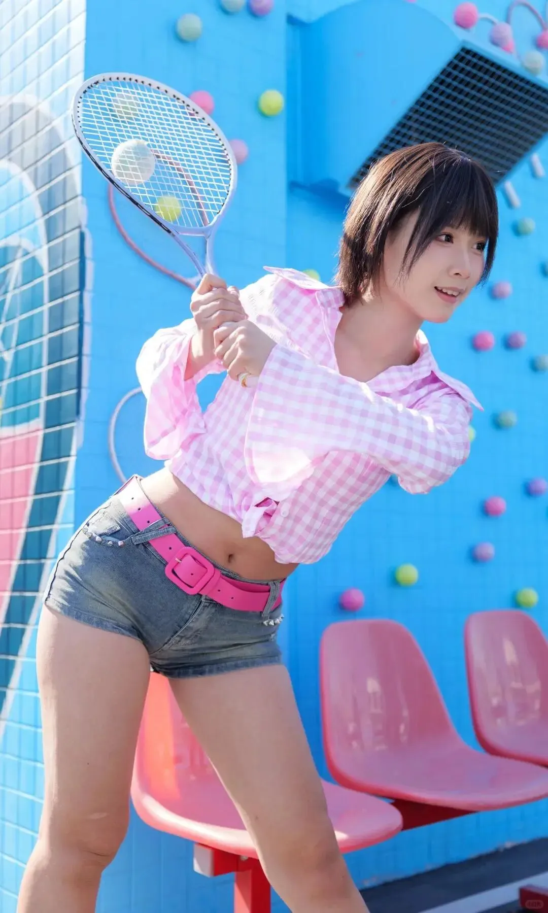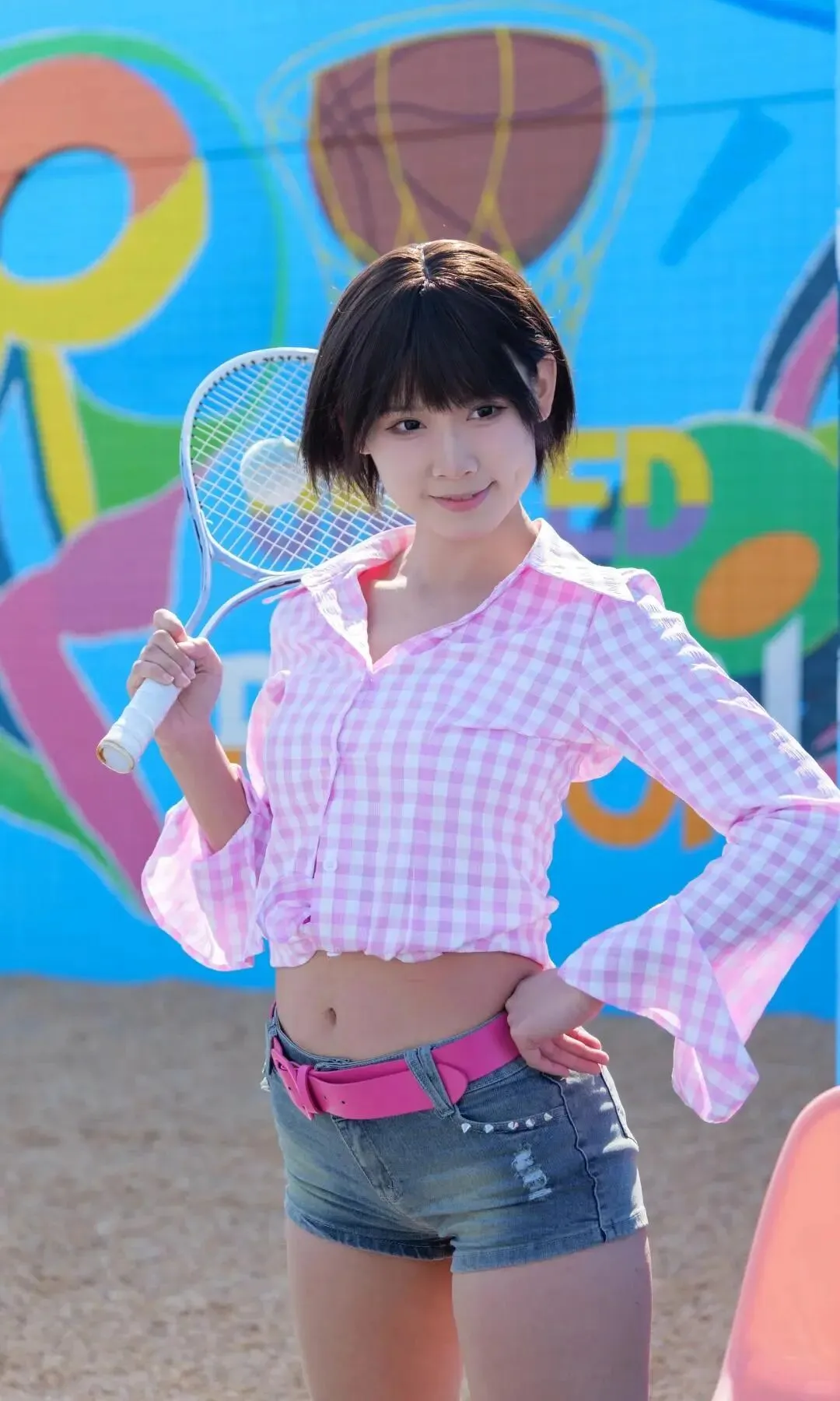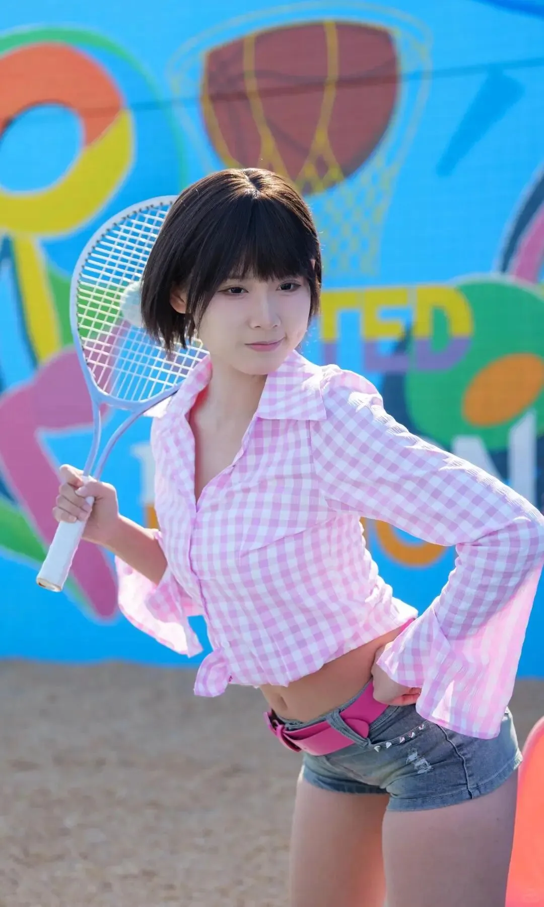 拍摄进行到一半,苏糖换了套浅蓝短上衣和高腰牛仔裤出来,瞬间让我忘了按快门。紧身的布料完美贴合她的曲线,腰腹处没有一丝赘肉,笔直的长腿在灯光下泛着健康的光泽,她坐在道具沙发上,手肘撑在膝盖上,歪头看向镜头时,指尖轻轻划过自己的大腿外侧。“林哥,这样会不会太随意啦?”她故意拖长声音,眼尾却带着狡黠的笑意。我走过去帮她调整额前的碎发,指腹不小心碰到她的额头,她不仅没躲,反而仰头蹭了蹭我的掌心,温热的呼吸扫过我的手腕,让我瞬间口干舌燥。