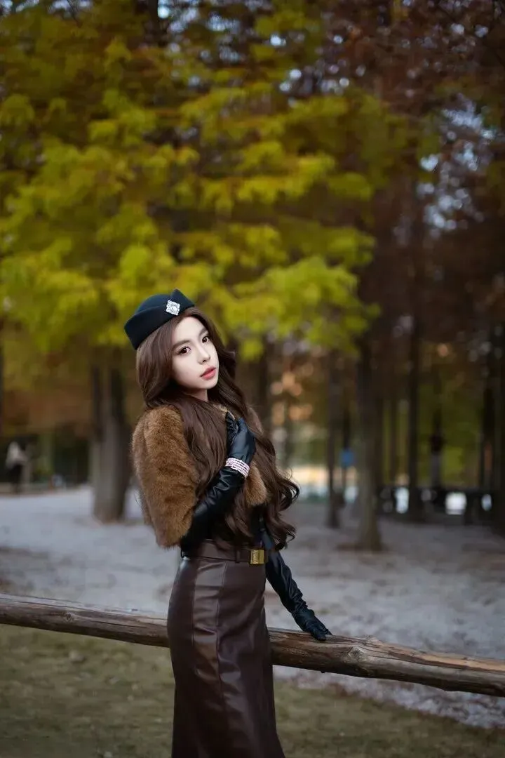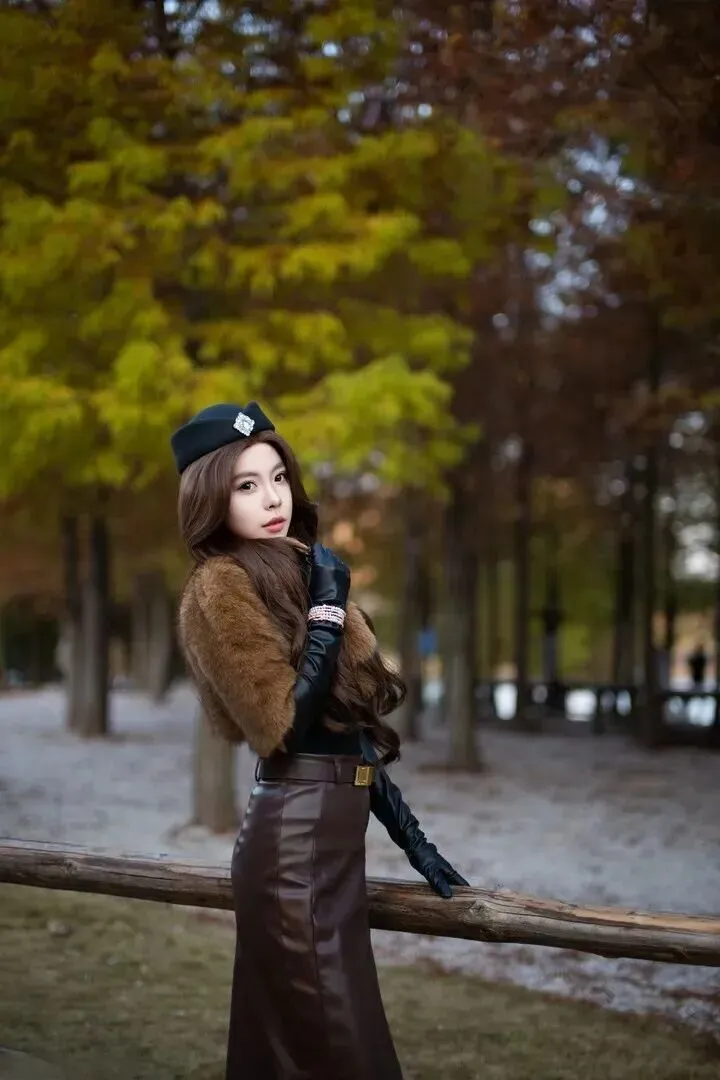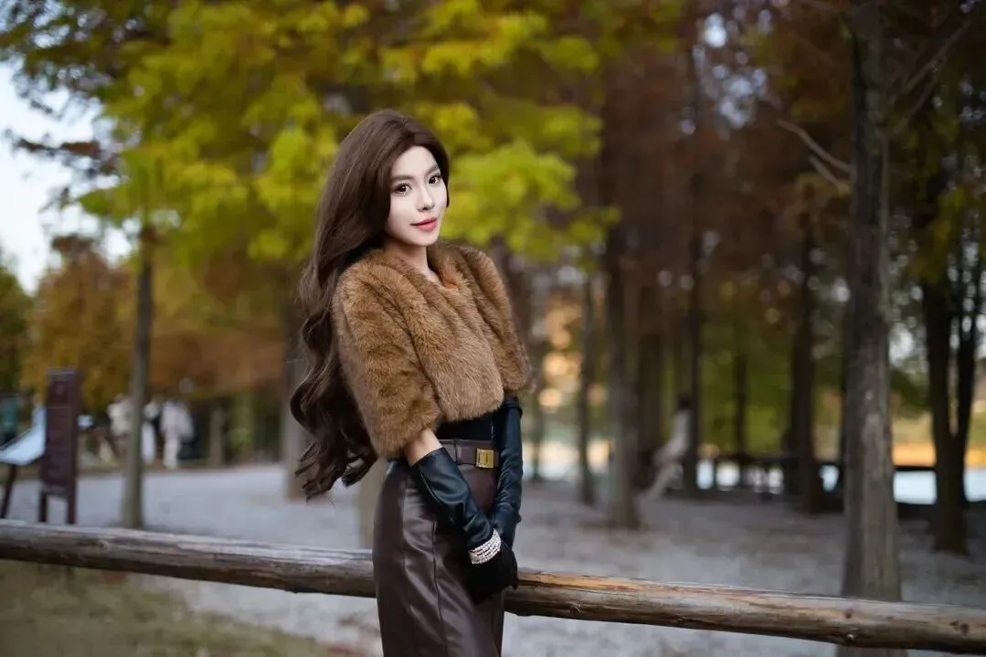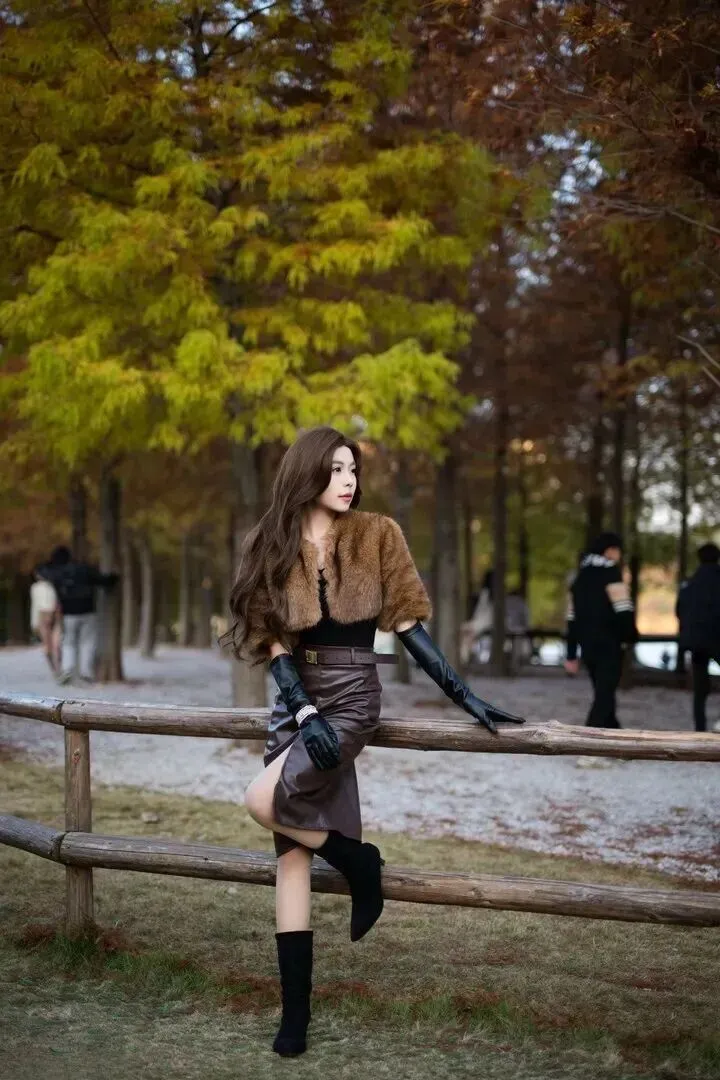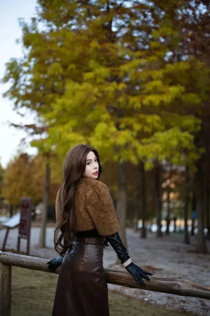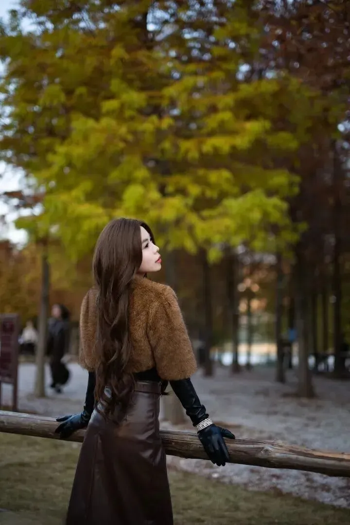 里面.配一件黑色.紧身.衣,.简单又百搭.。黑色是经.典色,不.会抢外套.的风头,还.能突出外套.的质.感。下身选.一条深棕色.皮质.半裙,.皮裙有.点挺.括,和毛绒.外套形成.对比,.整体更有.层次感.。裙子.带点开.叉,.走路时.微微.飘动,增添.一丝小.性感.。腰带.系紧点,能.显出腰身,.让身材比例.更好。