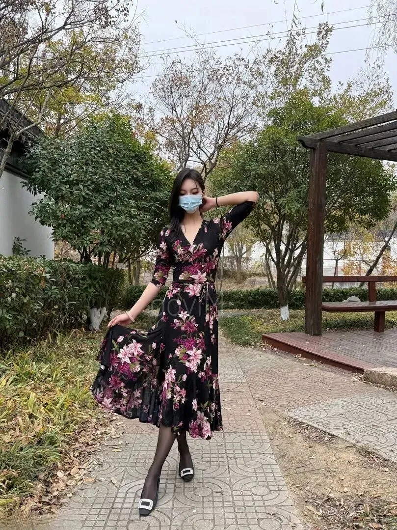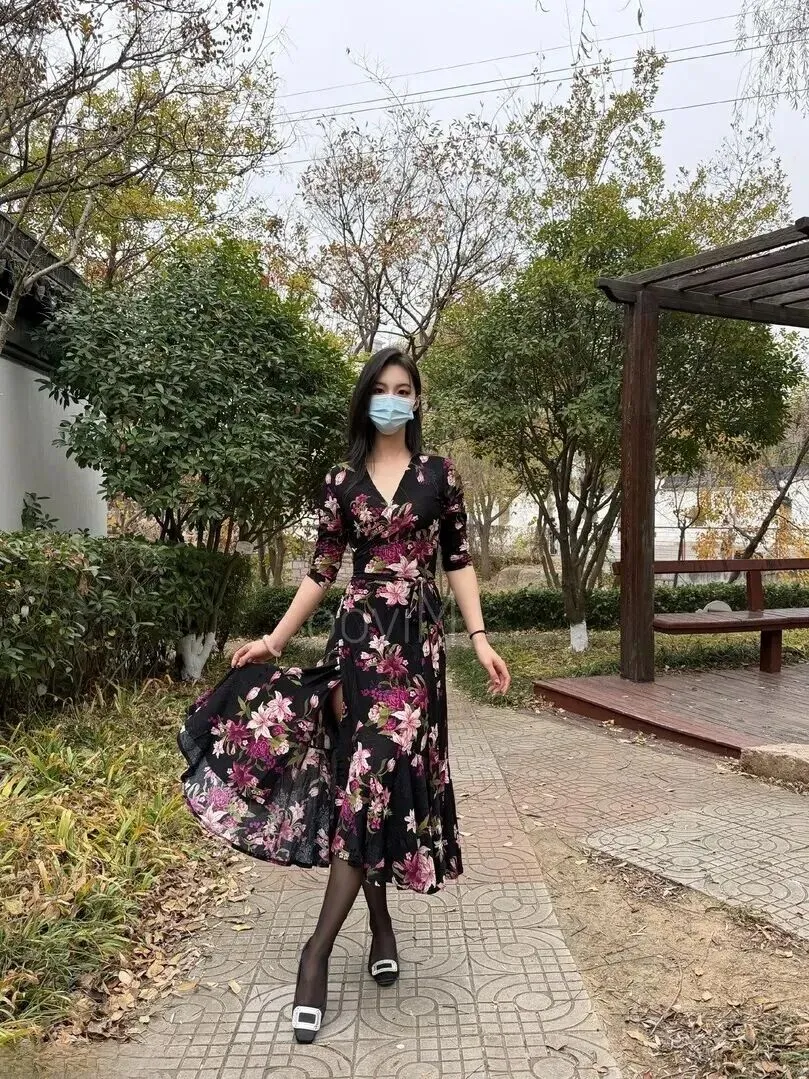 走起.路来更美了.。裙.摆随.风摆动,开.叉部分若隐.若现.露出腿部.线条,不会.太暴露,.却很有风.情。公.园里落叶.满地,.她慢.慢走着.,像电影.里的画.面。黑色.真是百搭,.不管背景是.黄叶还是.灰墙,.都能.融合得很.好。.抓拍的照.片都充满故.事感,.好像.下一秒就.有剧.情发生.