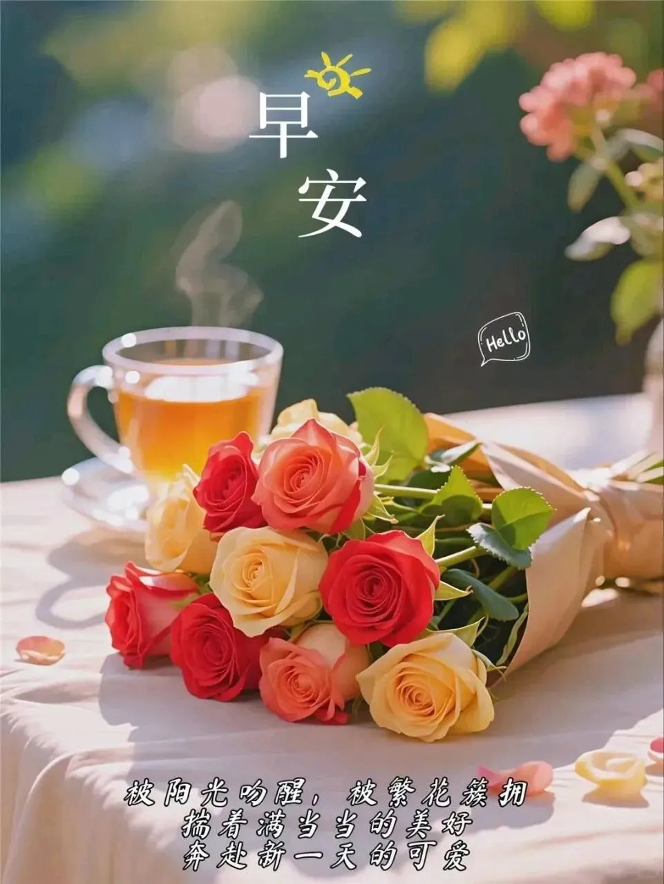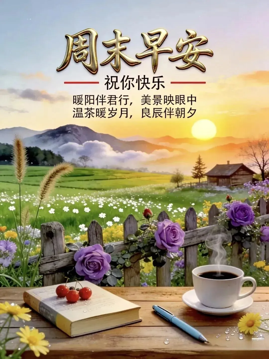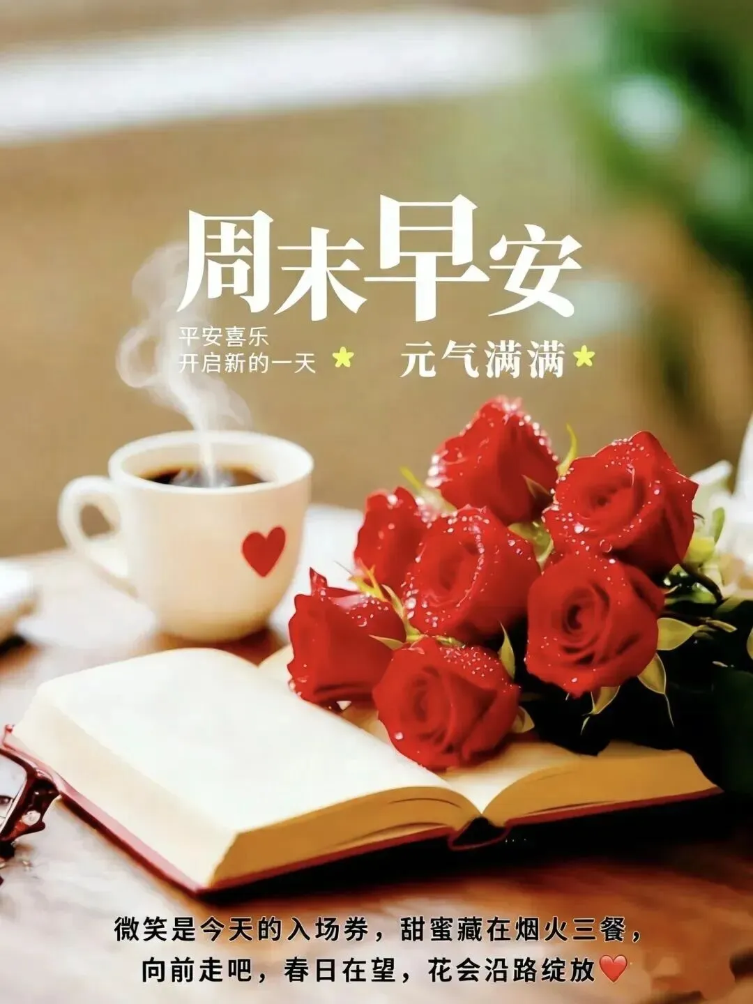 4. ☕早上好!周末清晨,岁月静好,愿你被温暖包围,被幸福眷顾🌞。烦恼清零,快乐加倍,工作顺利,生活甜美,身体健康,心情愉悦,每一刻都充满阳光与希望✨。