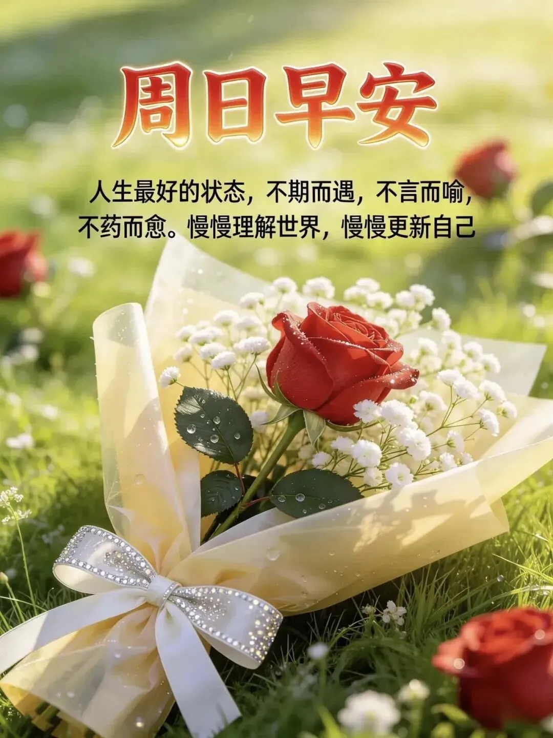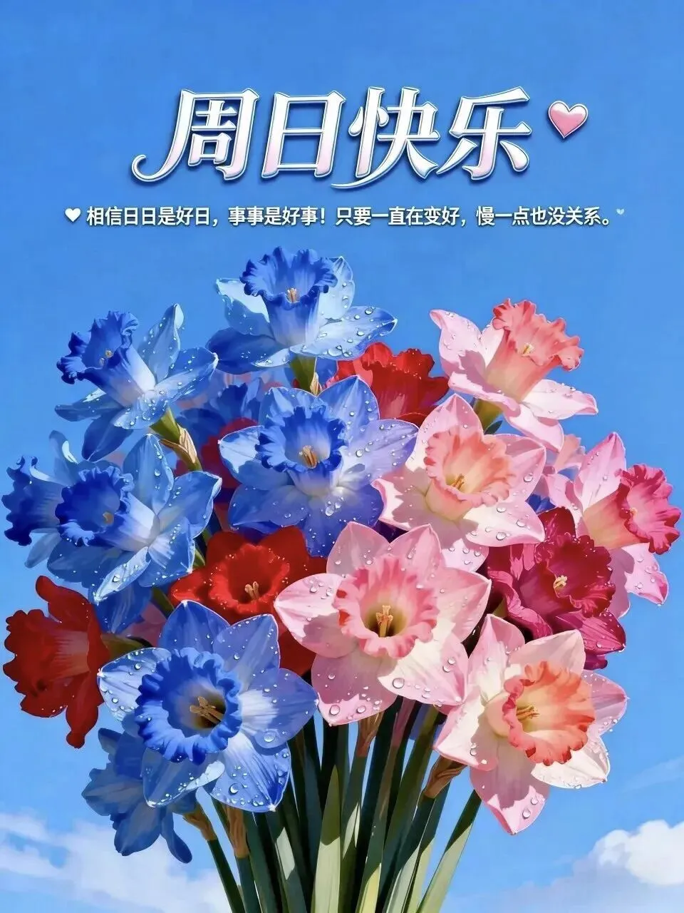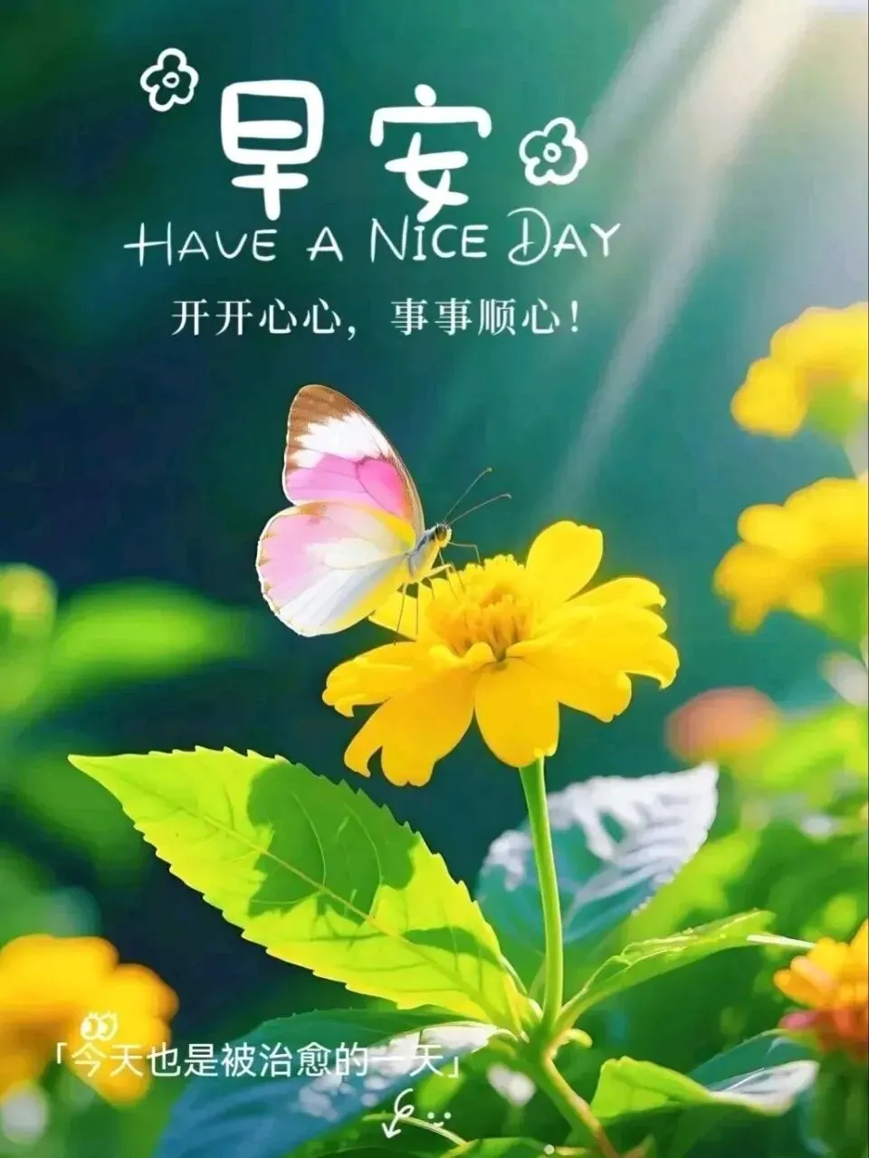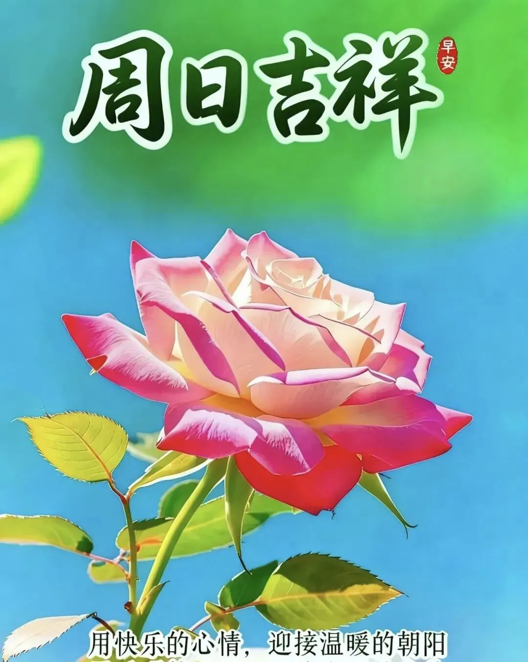1. 🌞周日早安~阳光温柔,微风轻拂,把烦恼都吹散,把快乐装满怀✨。新的一天,愿你心情舒畅,事事顺心,生活有滋有味,平安喜乐常相伴,轻松惬意度周末,时时都有小美好🌷。