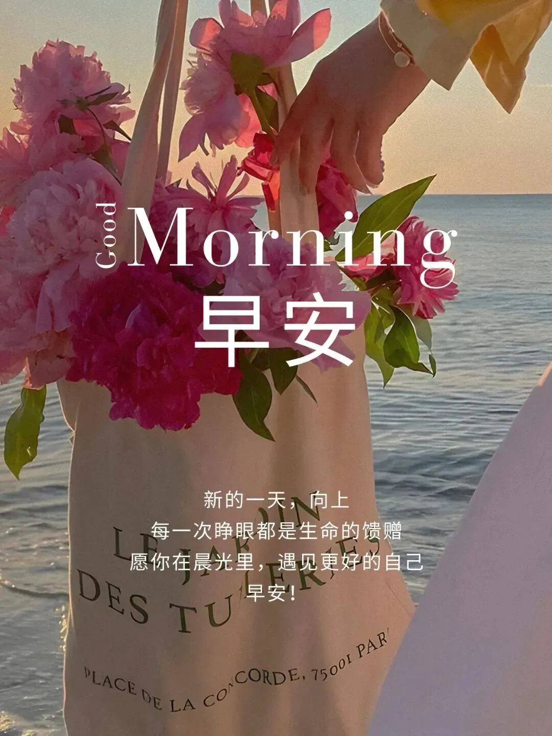 3. 🌷周日早安!清晨的第一缕阳光送给你,愿它照亮你一整天的好心情🌟。抛开忙碌,享受悠闲,愿生活温柔以待,幸福不期而遇,平安顺遂,喜乐无忧,轻松度过美好周末☕。