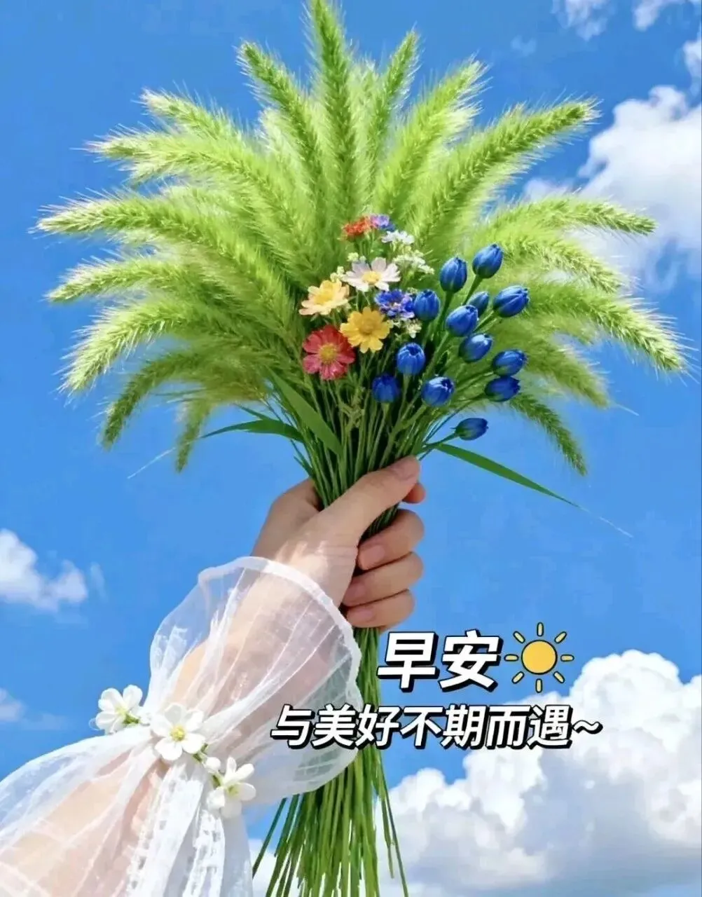 5. 🌟周日早安!新的一天,新的开始,愿好运与你撞个满怀,福气常伴左右🌷。保持微笑,心怀美好,日子平淡也欢喜,事事顺心皆如意,平安健康,幸福常伴,轻松又惬意😊。