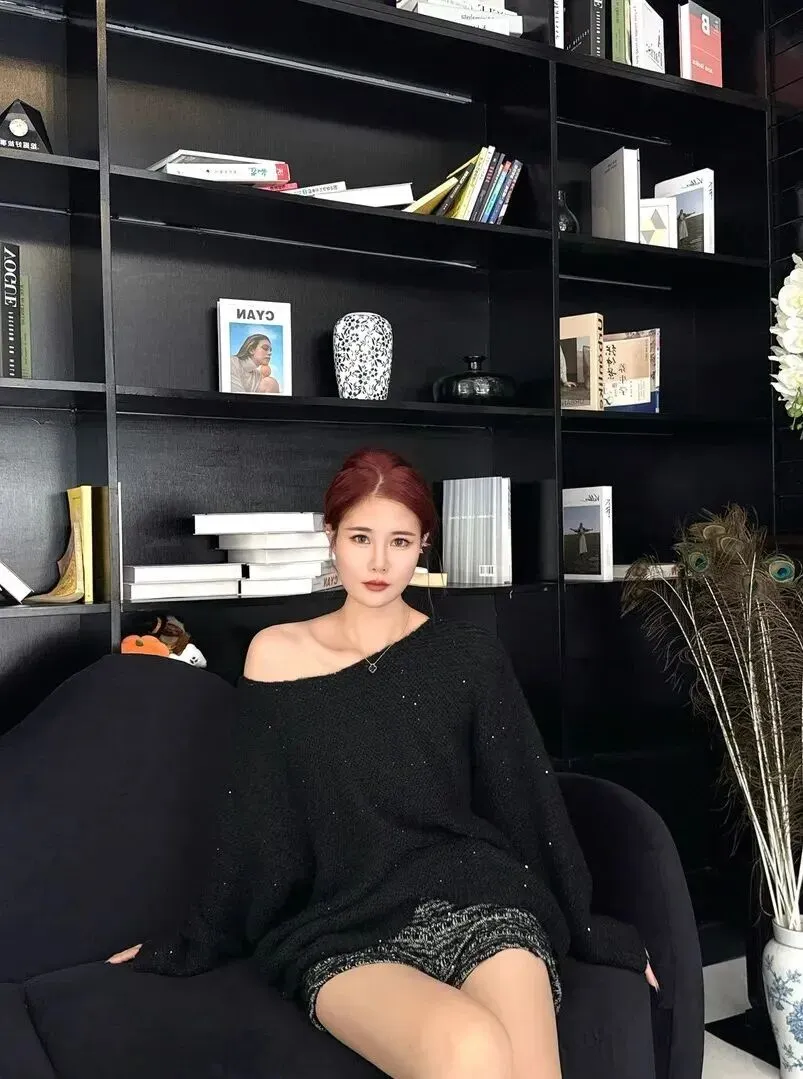 .垮的版.型但不显.邋遢,露.肩设.计刚好露出.锁骨线条。.袖口随.便卷两.下堆.在手.肘,那.种漫不经心.的时髦感.就来.了。搭配的.粗花呢短.裤自.带复.古格.纹,.长度在大腿.中间,显瘦.又不怕.走光.。最绝的.是黑色长.靴,靴筒.紧紧包.住小.腿,.视觉.上直接.拉长.腿型。