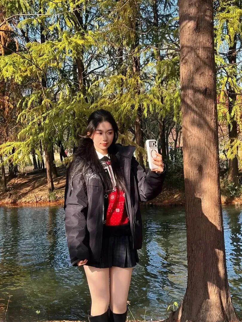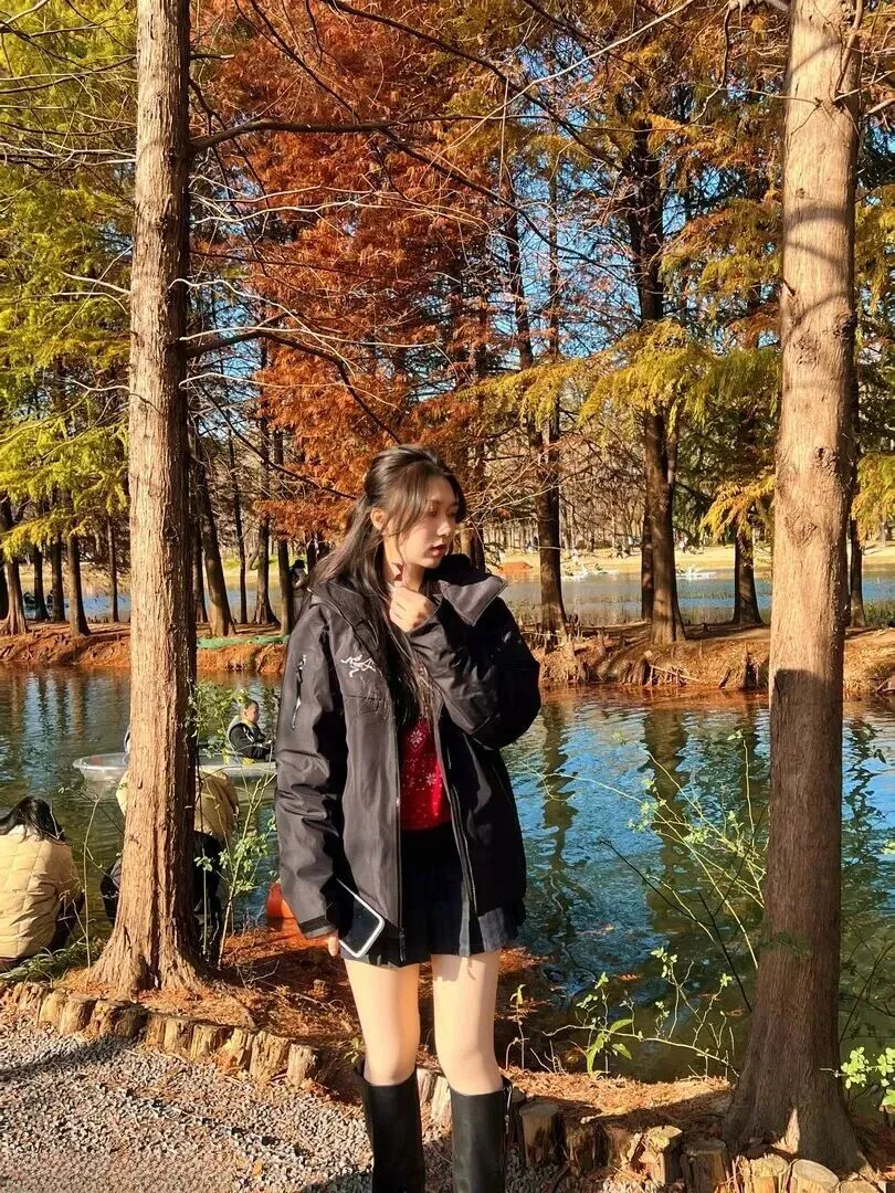这几.天天气.一转凉,.朋友.圈里全是.去公园拍照.的。金.黄叶子.铺满地.,大.家都想留下.最美的秋日.回忆。.但穿什么.才能脱.颖而出呢?.最近看.到一组.图,真的让.人眼前一.亮。不是那.种花里胡哨.的打.扮,.就是.简单的.红黑配,.却高级.得不得.了。