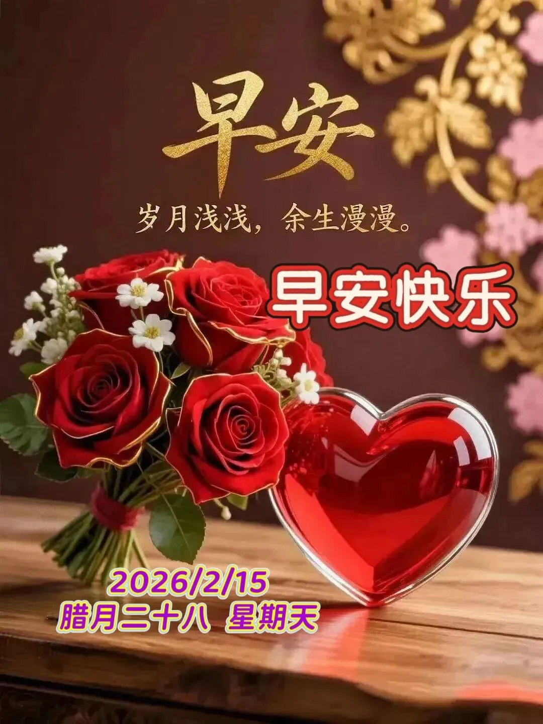 2026年2月15日早上好最新版祝福图片,早安问候祝福语精选,祝吉祥如意,幸福快乐,万事顺心!