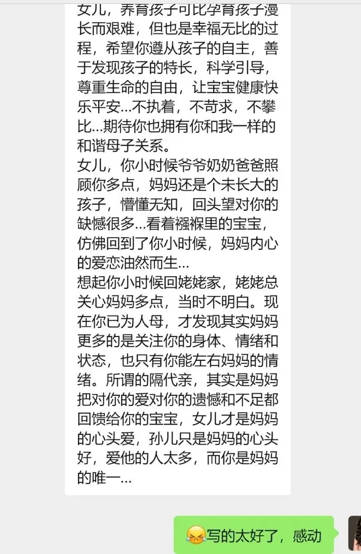 一位母亲在女儿成为母亲后,发来一段字字滚烫的感悟。