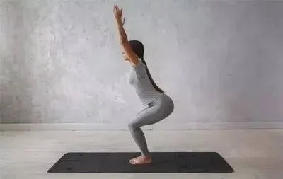 瑜伽女神式中骨盆是中立位,脊柱向上直立,下蹲过程中一旦发现臀部上翘,骨盆前倾,需立即停止保持,否则腰椎出现挤压疼痛。