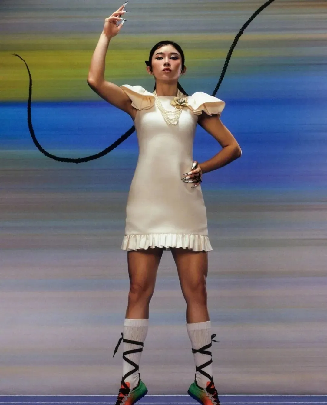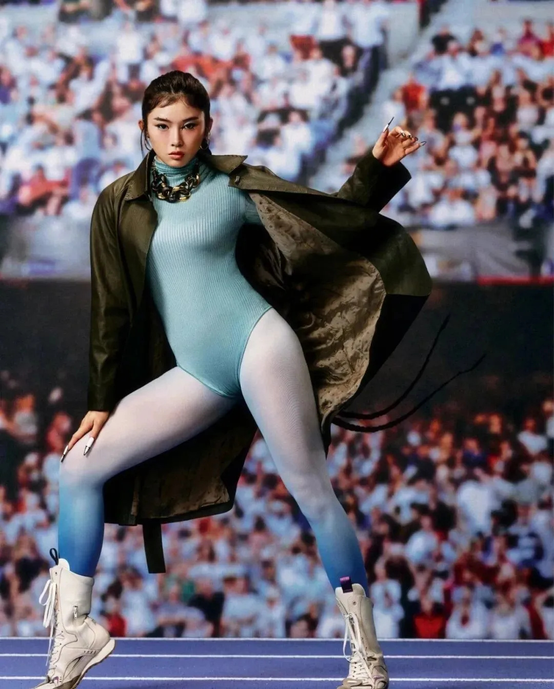 回看此前她为《新视线》杂志拍摄的这组“无裤风”大片,至今仍是体育界跨界时尚的巅峰之作。照片中的她大胆挑战紧身连体衣与运动鞋的混搭,将“田径女神”的健康线条与先锋时尚完美融合。