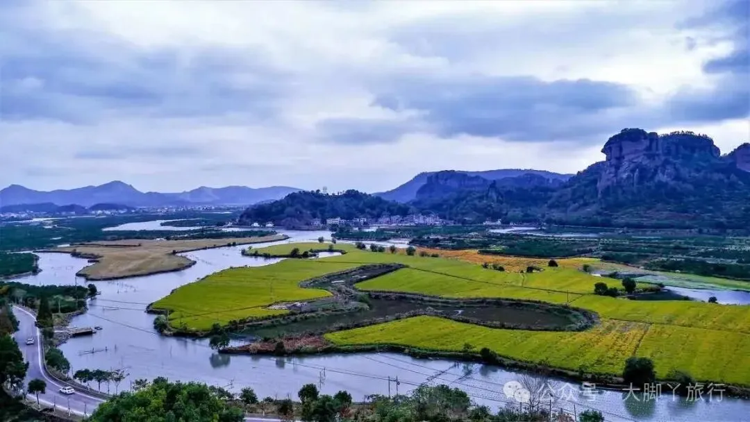 早餐后,乘车赴桃江十三渚】(游览时间大约1.5小时左右)桃江十三渚风景区集渚上田园风光、火山遗迹等资源于一体,峰岩怪石、洞天林立,是临海国家地质公园、桃渚省级风景名胜区的主要组成部分。由桃江风情、孔雀啄绿、火山遗迹、盘龙临海、将军遗风、绿客餐秀、长城峰林、石柱登天、桃江画渚、桔岭流香十个分景区组成。其中火山遗迹等区集中展现了八千万年前火山运动塑造的流纹岩台地、峰墙、峰林、岩洞、天生桥等优美景观。桃江将田畦切割包围成大小不一、形状迥异的十三个渚,桃江十三渚面积逾亩,江渚星罗棋布,是典型的湿地景观。渚上原植有大量桃树,故称桃渚。桃江十三渚水碧田绿,赤山黛影,渚上风光随季节农作物更替呈五彩变换,有“中国美的田园风光”之美誉。