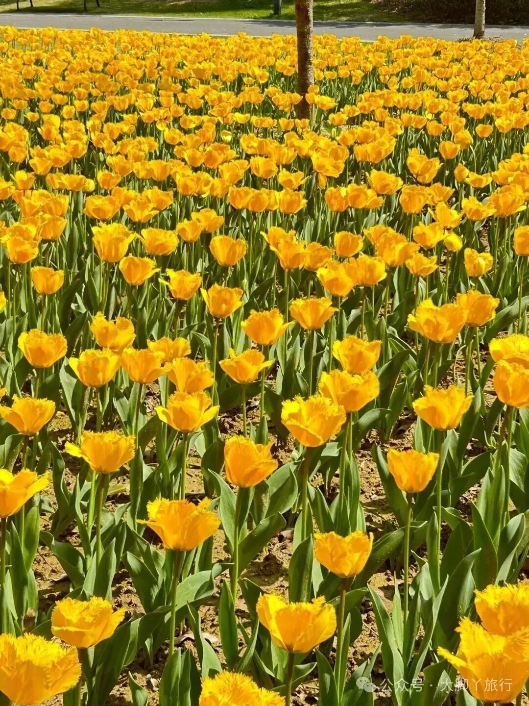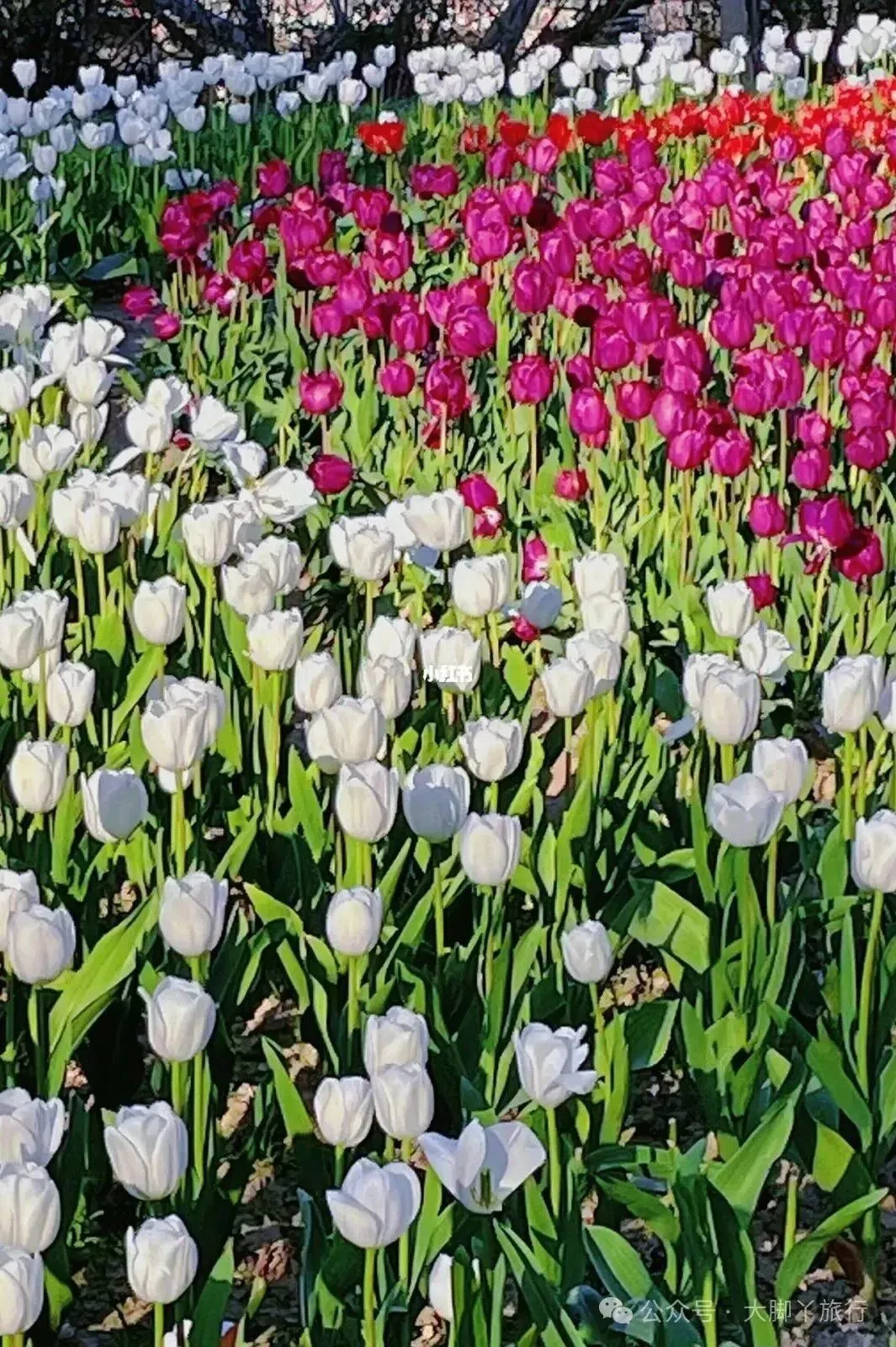 后前往【灵湖郁金香】(自由活动,约30分钟左右)一踏入灵湖公园,你将被成片的郁金香花海所震撼。红的似火,粉的似霞,白的似雪,这些郁金香在微风中轻轻摇曳,仿佛在向每一位游客招手致意。这里有不同品种的郁金香,有的花瓣层层叠叠,宛如雍容华贵的牡丹;有的花瓣纤细修长,宛如亭亭玉立的少女;还有的花瓣边缘带着锯齿,宛如热情奔放的舞者。郁金香们竞相绽放,将湖畔装点成一片五彩斑斓的海洋。