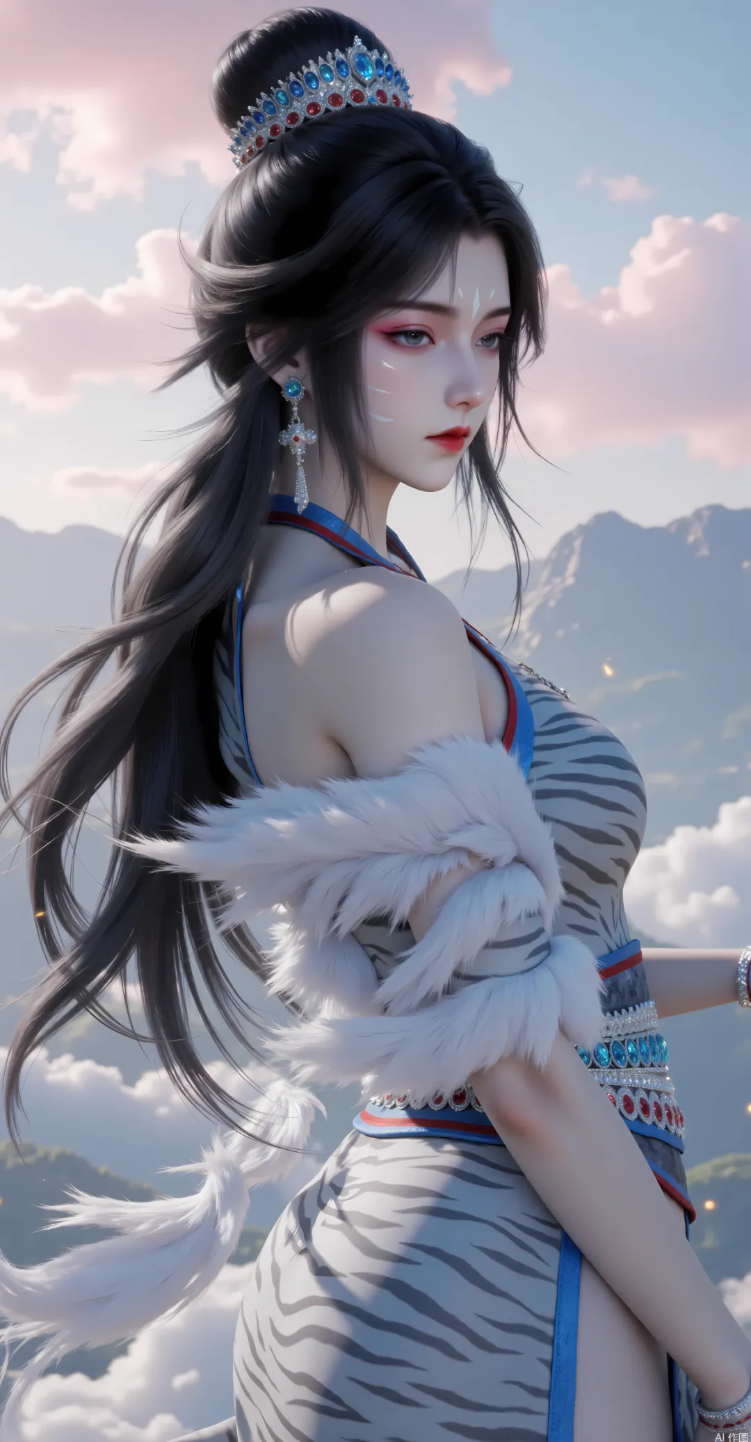 绝世容颜:虎骨人形,威容凛然,眉眼载千年沧桑!白虎堂主的容颜,是上古白虎妖神化形后的极致形态,兼具神兽的磅礴与人类强者的挺拔,天生便带着一股睥睨天下的威慑力,哪怕是在高手如云的天庭,也是一眼便能让人铭记的存在。他身形极为高大挺拔,约莫两米有余,肩宽背阔,身形匀称而充满力量感,不似寻常妖族那般魁梧笨重,也不似人类修士那般清瘦寡淡,每一寸肌肉都线条流畅,蕴含着毁天灭地的爆发力,那是白虎血脉常年滋养与千万次厮杀磨练的结果,肩线宽阔如远山,腰腹紧实如磐石,脊背挺拔如青松,往那里一站,便如同一座不可逾越的山岳,自带一股磅礴的压迫感。
