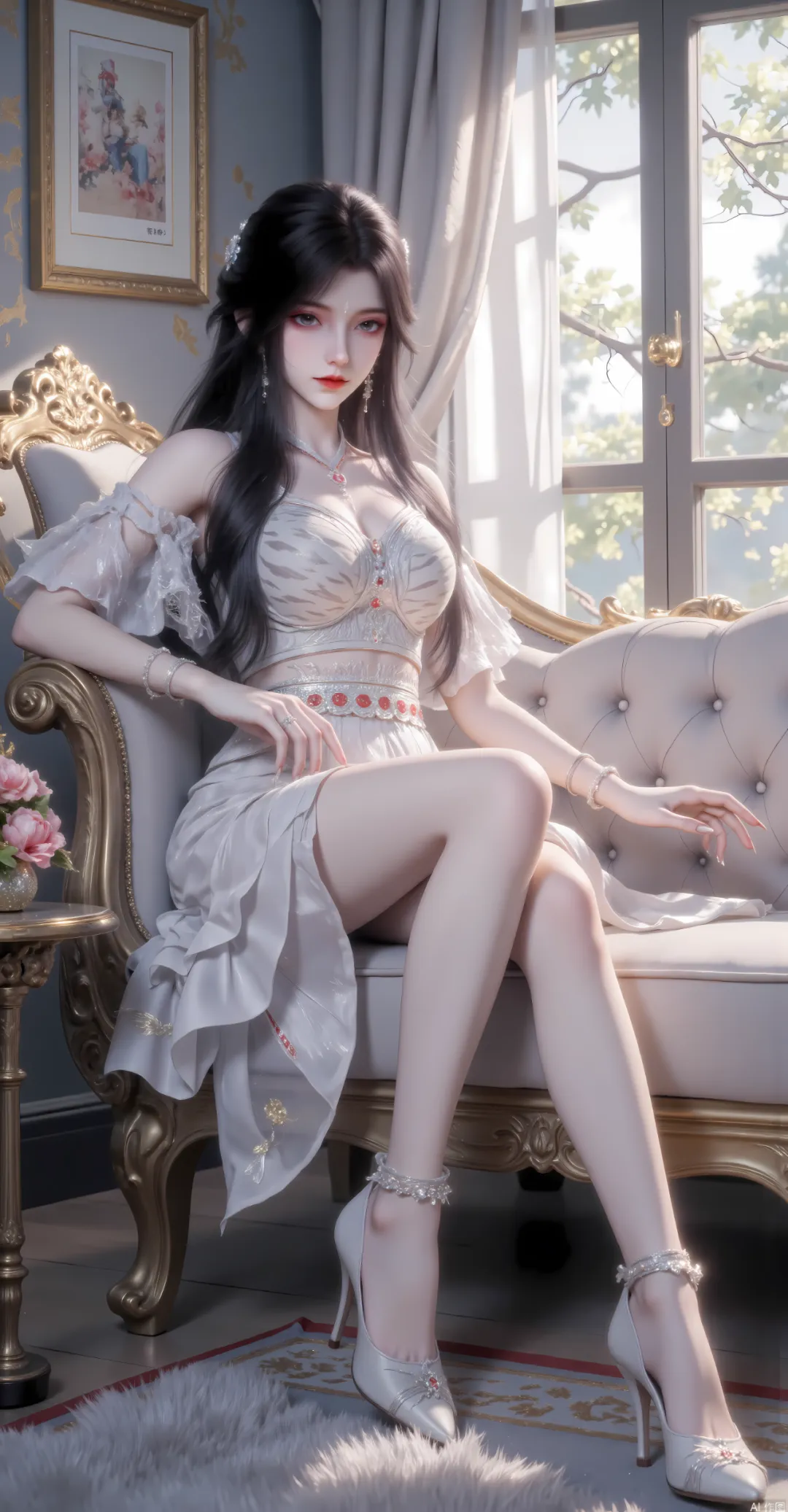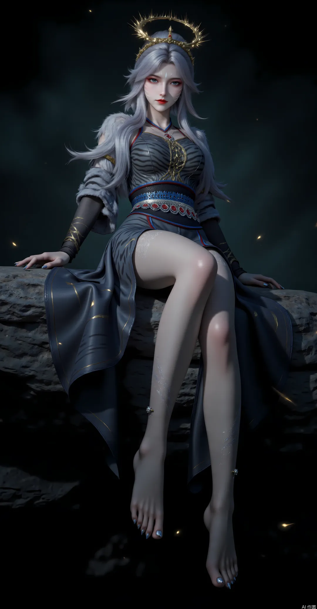 眼型是深邃的丹凤眼,眼尾微微上翘,似含惊雷,瞳仁是极浅的银白色,宛如浸在寒冰中的琉璃宝石,澄澈通透,又深不见底,藏着他的威严、他的坚守、他的孤独与他的担当。这双眼睛,是他最具杀伤力的武器之一,既能洞察人心、看破虚妄,也能释放白虎神威,震慑诸天万族,平日里眸光沉静,流转间尽是沉稳与睿智;动用力量时,眸色会瞬间转为深银白色,灵光暴涨,白虎虚影在眼眸中流转,透着毁天灭地的威压,仅凭一眼,便能震慑低阶神魔,甚至让同阶强者心生忌惮。左眼眉骨处,有一道淡淡的剑疤,从眉峰延伸至眼尾,那是他年轻时为守护白虎血脉遗孤,与天庭叛逆厮杀留下的印记,疤痕虽淡,却愈发衬托出他眼眸的凌厉与威严,也暗示着他一生的铁血与坚守。