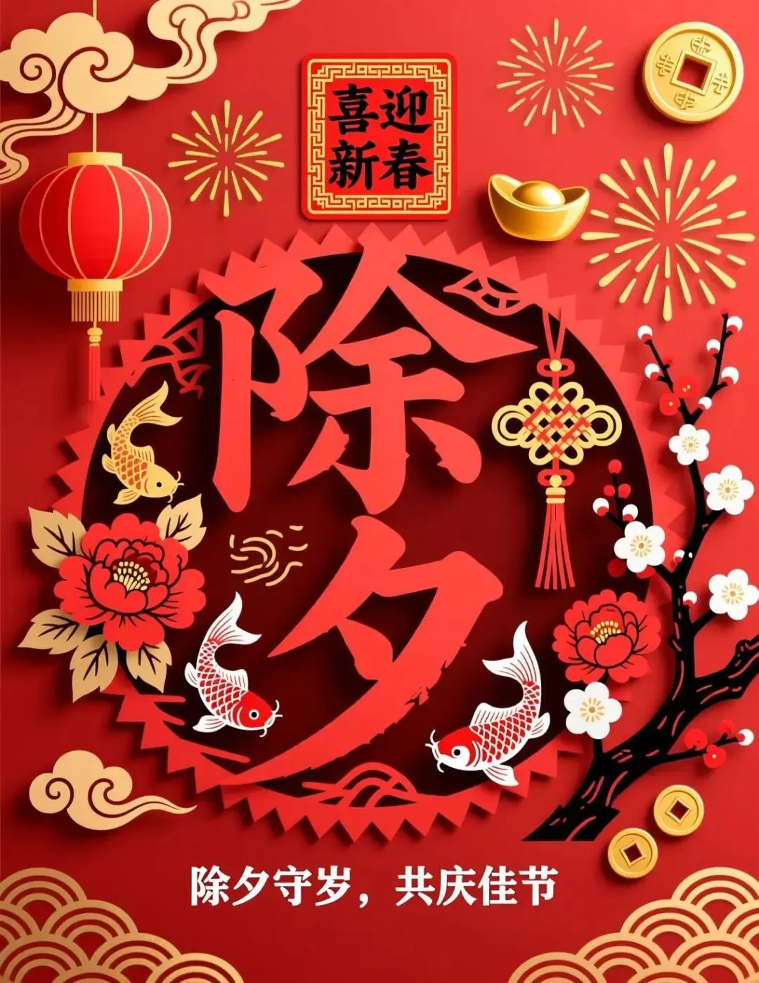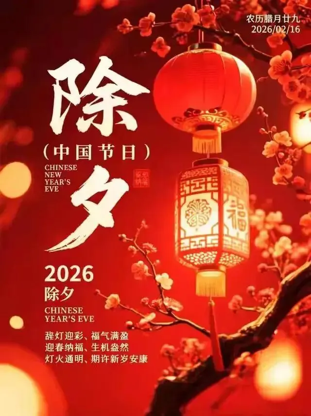 2026年2月16日除夕祝福图片,除夕快乐,喜迎新春, 阖家团圆