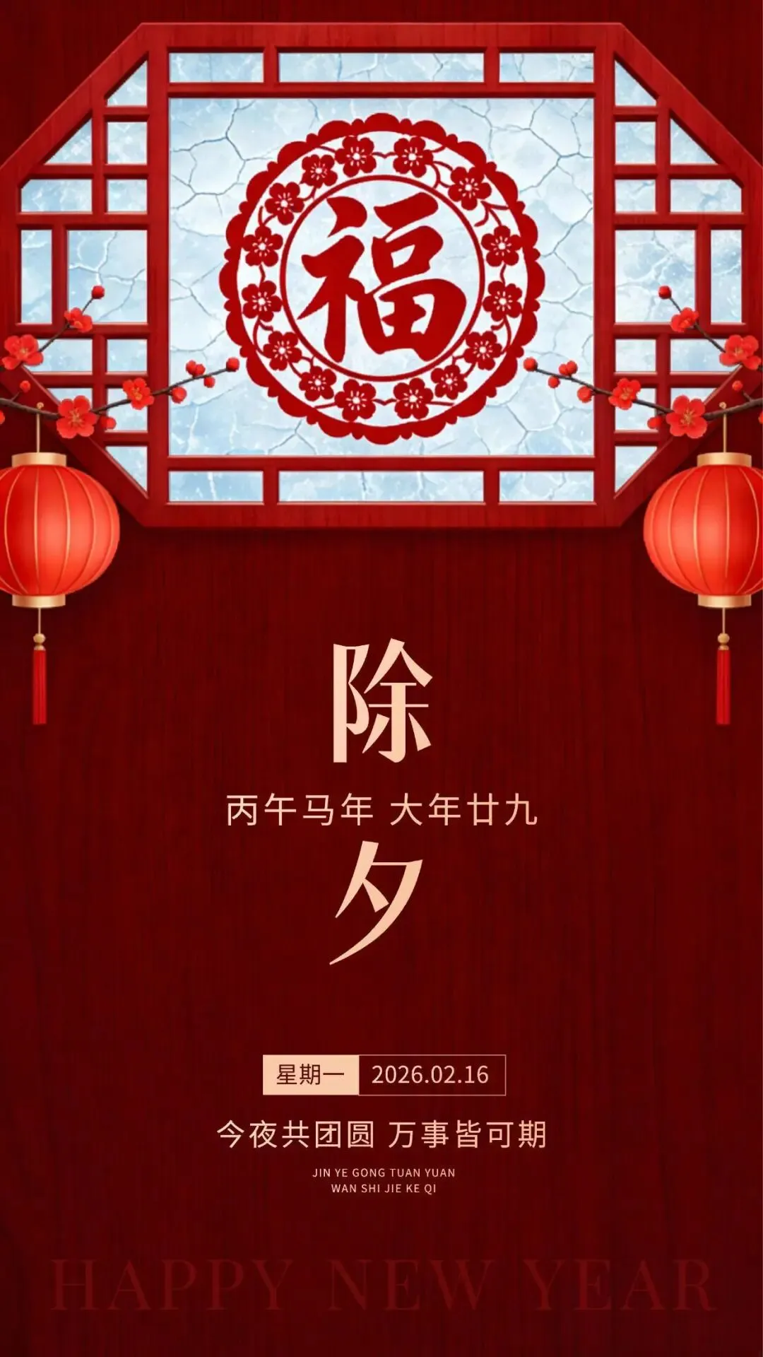 2月16日除夕祝福图片,爱的人,喜乐如常;盼的事,归于心上
