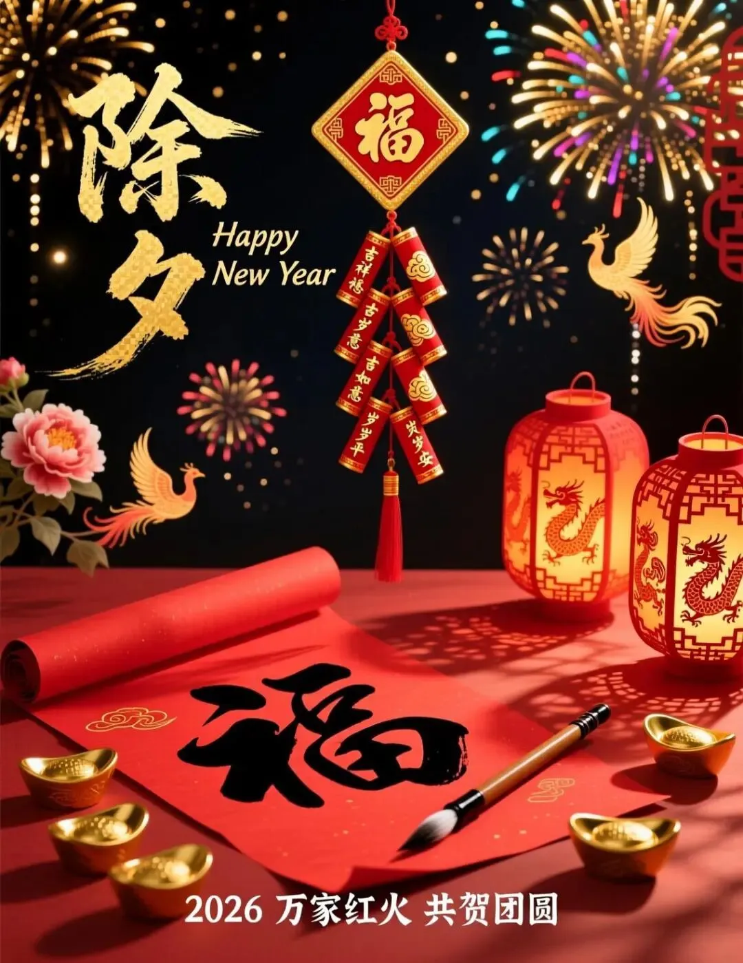 除夕是位慈祥的老者,他染红了灯笼的脸颊,点燃了爆竹的欢歌,更把团圆的醇酿捧给人间。烟花是他挥洒的星雨,落在你肩头,便开出一整年的锦绣繁花,芬芳了岁月的鬓角。烟花在夜空这块巨大的画布上肆意挥洒,时而如金菊怒放,时而似流星坠地,时而像瀑布倾泻。它们争先恐后地跃上枝头,争抢着向世界大声喊出:“新年好,愿你的梦比烟火更绚烂!”