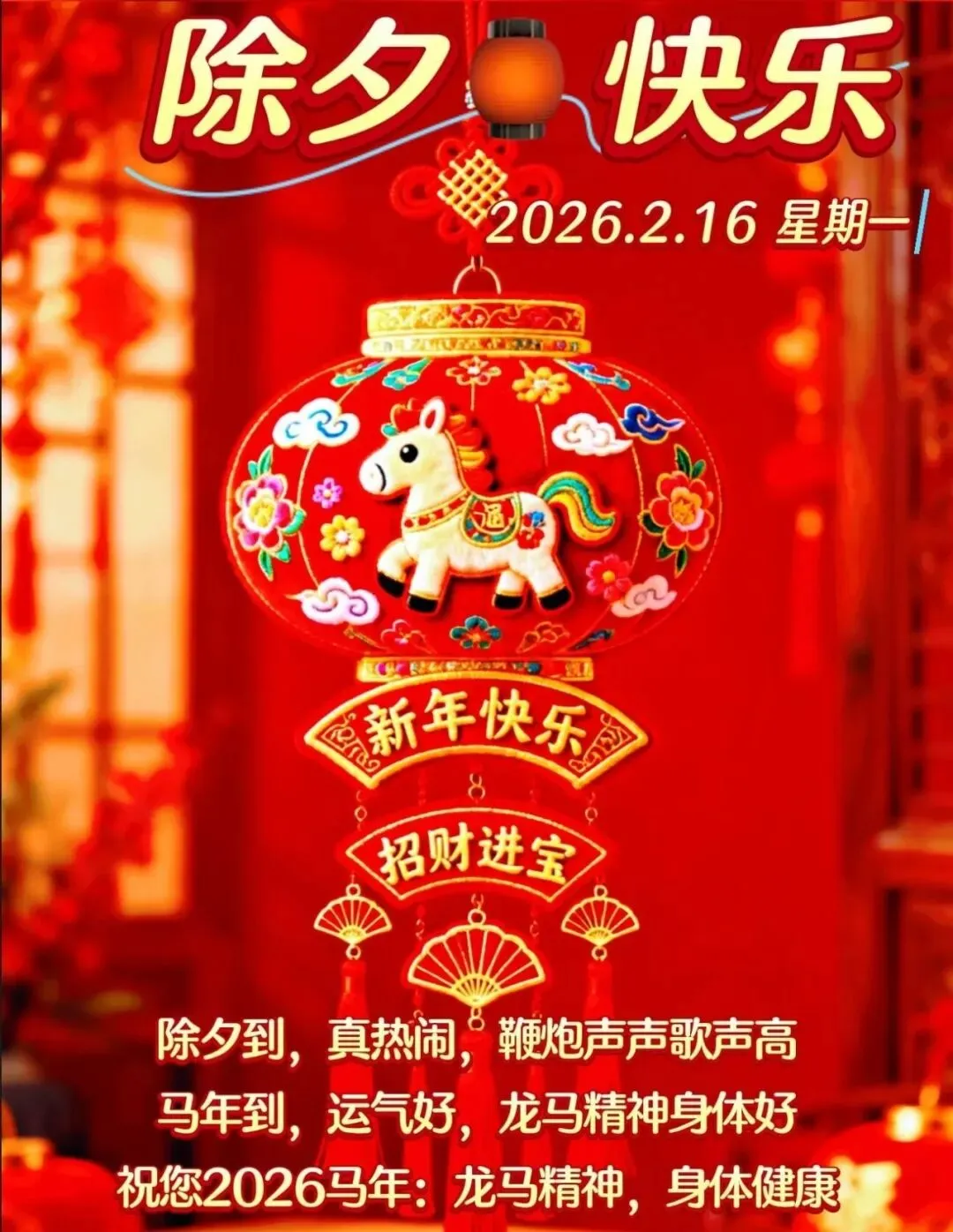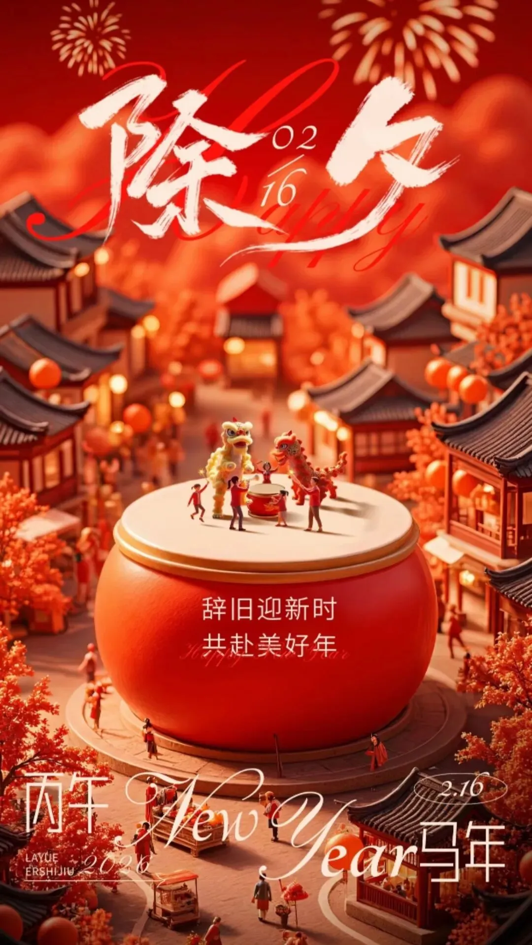 2026年2月16日除夕祝福图片,辞暮尔尔,烟火年年,朝朝暮暮,平平安安