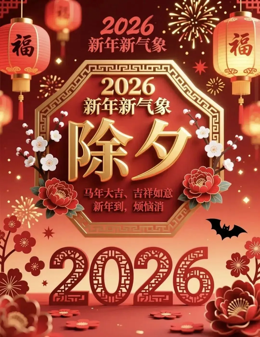 🌞除夕到,祝福到,除夕除夕,🌹除去烦恼,迎接希望,💝希望亲人们,朋友们,🌟岁岁常欢喜,万事皆如意,💐愿2026年一切如愿,🍓事事顺心,好运连连!🌷万事如意!马年吉祥!🍀