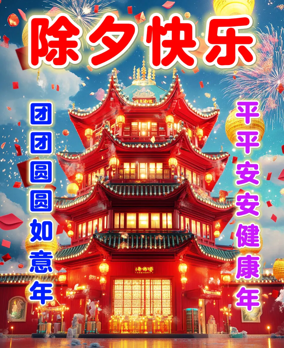 🌊又是一年除夕至,在这个美好的节日里,🌸衷心的祝愿每个人新年快乐,阖家欢乐齐欢笑,🌺万事如意,身体健康,新年吉祥!🍎祝大家除夕快乐! 💕